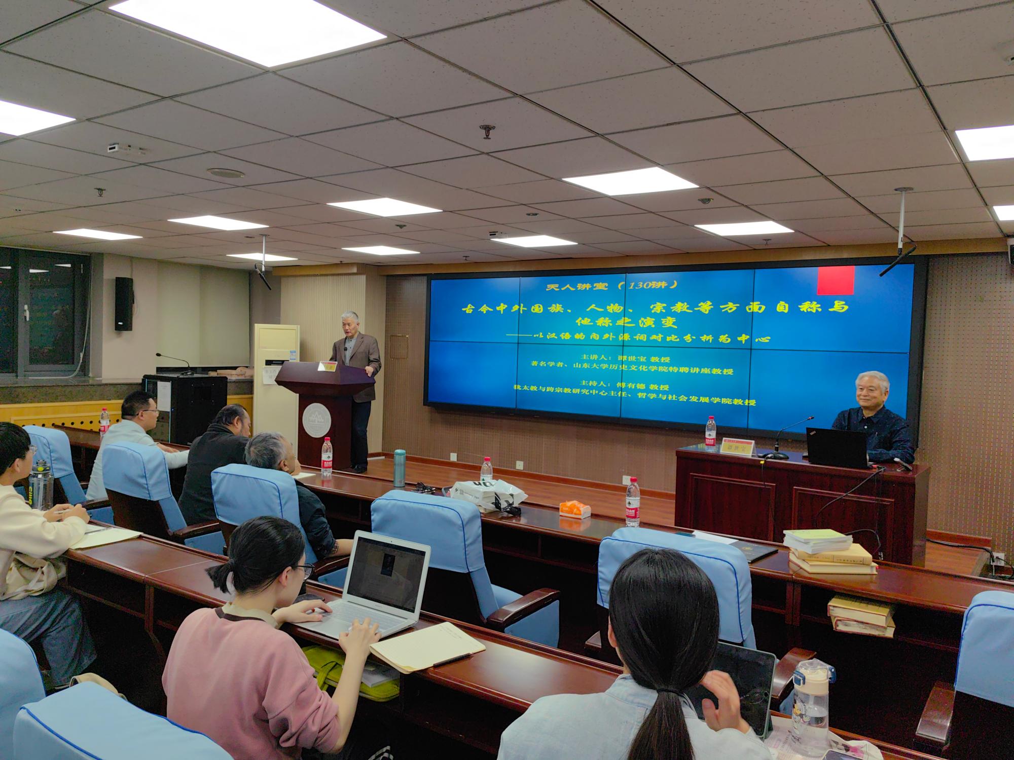 10月12日晚,著名学者、山东大学历史文化学院特聘教授谭世宝先生做客“天人讲堂”第130讲,带来一场主题为“古今中外国族、人物、宗教等方面自称与他称之演变——以汉语的内外源词对比分析为中心”的演讲。
