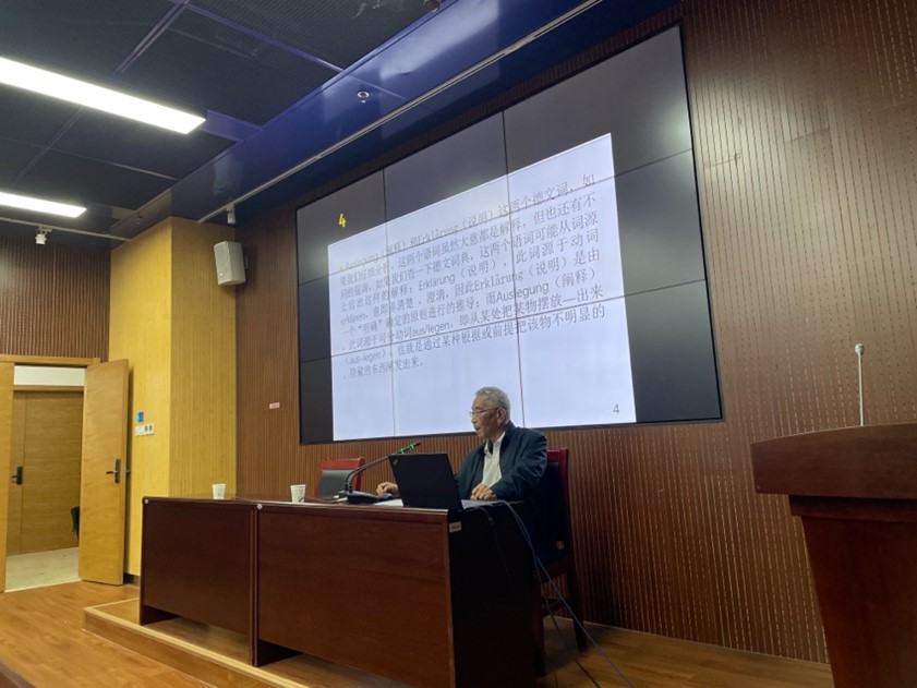 洪汉鼎教授做“Auslegung(阐释)与Erklärung(说明)——一种概念史的研究”专题讲座