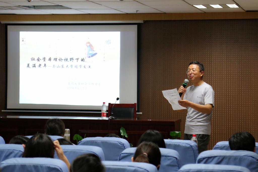 6月7日,复旦大学社会工作学系副教授陈虹霖博士做客哲社学院,并作了题为“社会资本理论视野下的美满老年研究”的学术报告。哲社学院副院长程胜利教授主持报告会。