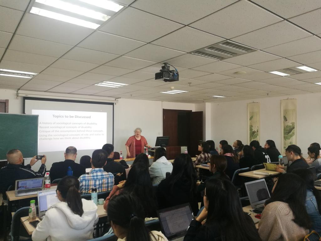 10月23日上午,哲社学院朱雀专家讲座在知新楼1421报告厅举行,美国加勒德特大学社会学系Sharon N.Barnartt教授作了题为“用社会学改变我们对残障的看法:残障是固定的,还是流动的?”的学术讲座。哲社学院社会工作系葛忠明教授担任主持,讲座吸引了诸多教师和同学们前来,现场座无虚席。