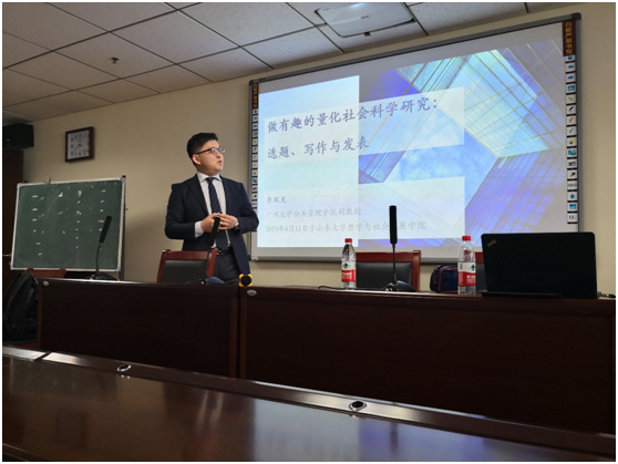 4月11日,广州大学社会学系副教授李双龙做客山东大学哲社学院,做了题为“做有趣的量化社会科学研究:选题、写作与发表”的讲座,哲社学院张月云副教授主持讲座。