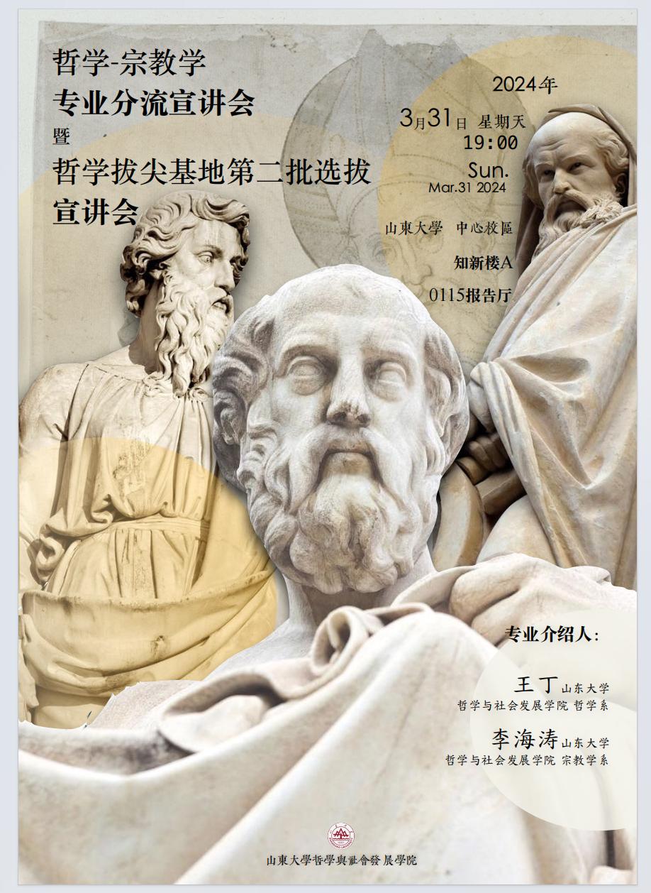 面向对象:有意向了解哲学、宗教学专业的全校本科生,有意向了解哲学拔尖基地班的全校本科生