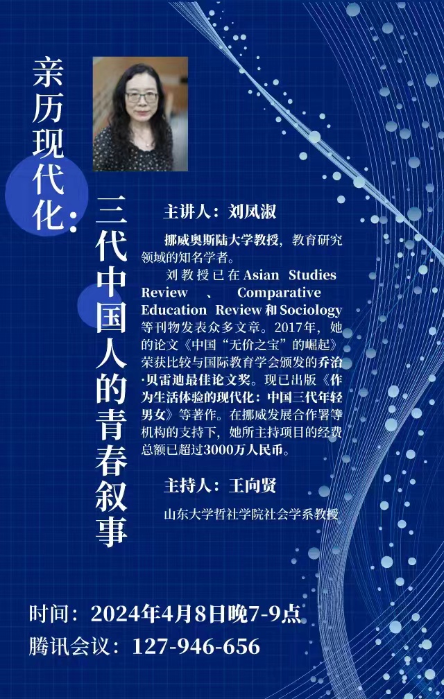挪威奥斯陆大学教授,教育研究领域的知名学者。刘教授已在Asian Studies Review、Comparative Education Review和Sociology等刊物发表众多文章。2017年,她的论文《中国“无价之宝”的崛起》荣获比较与国际教育学会颁发的乔治·贝雷迪最佳论文奖。现已出版《作为生活体验的现代化:中国三代年轻男女》等著作。在挪威发展合作署等机构的支持下,她所主持项目的经费总额已超过3000万人民币。