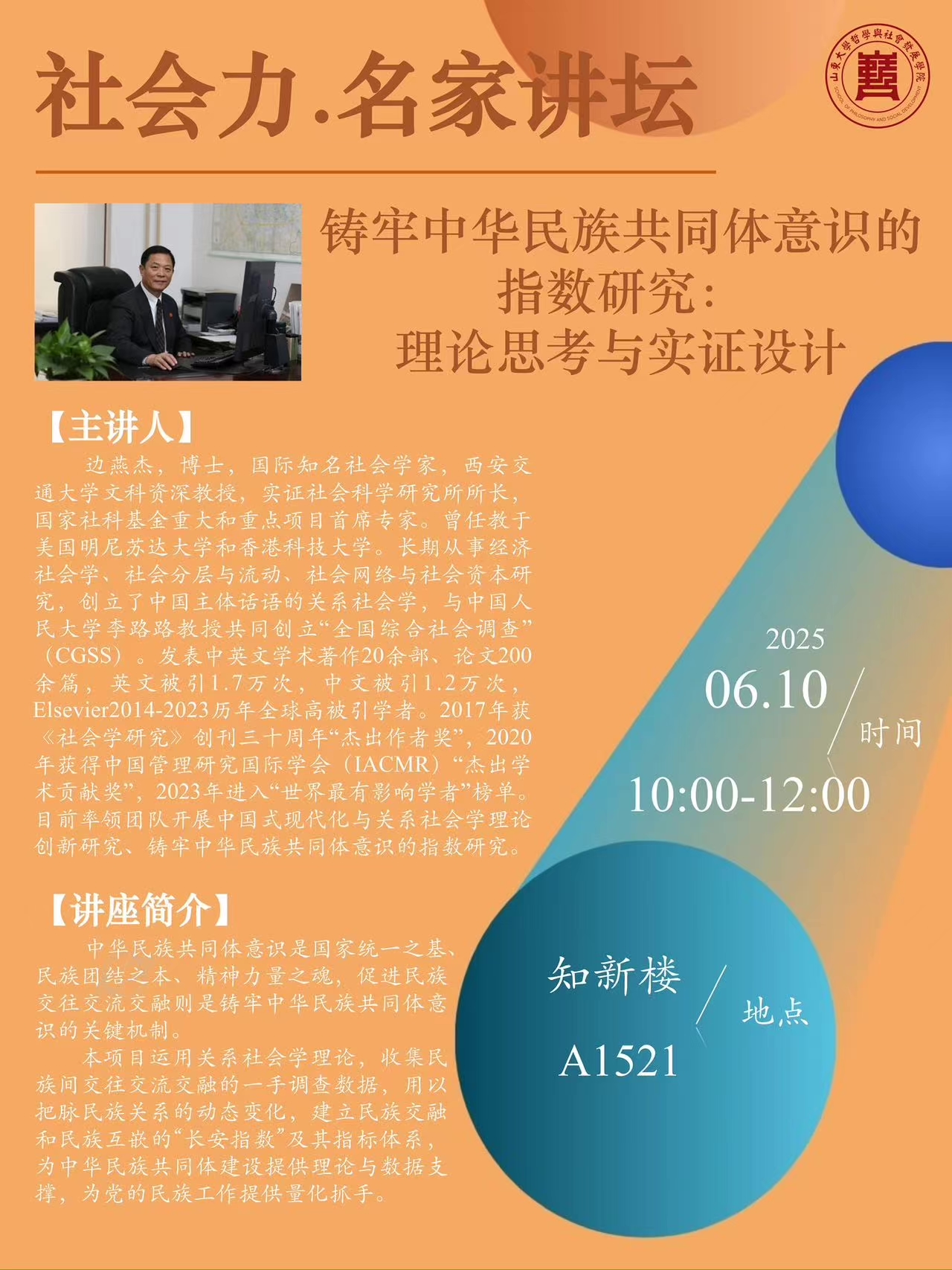 社会力名家讲坛——铸牢中华民族共同体意识的指数研究:理论思考与实证设计