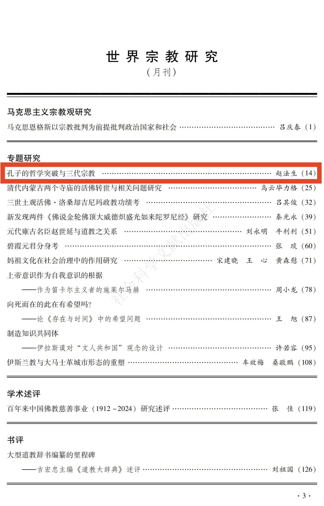 近日,山东大学成人在线免费视频赵法生教授在《世界宗教研究》2024年第4期上发表了题为《孔子的哲学突破与三代宗教》的高质量论文。