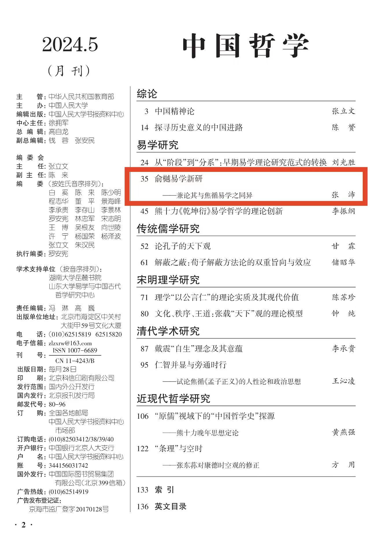 近日,人大复印资料《中国哲学》2024年第5期全文转载了山东大学易学与中国古代哲学研究中心张沛副教授的题为《俞樾易学新研——兼论其与焦循易学之同》的高质量论文。