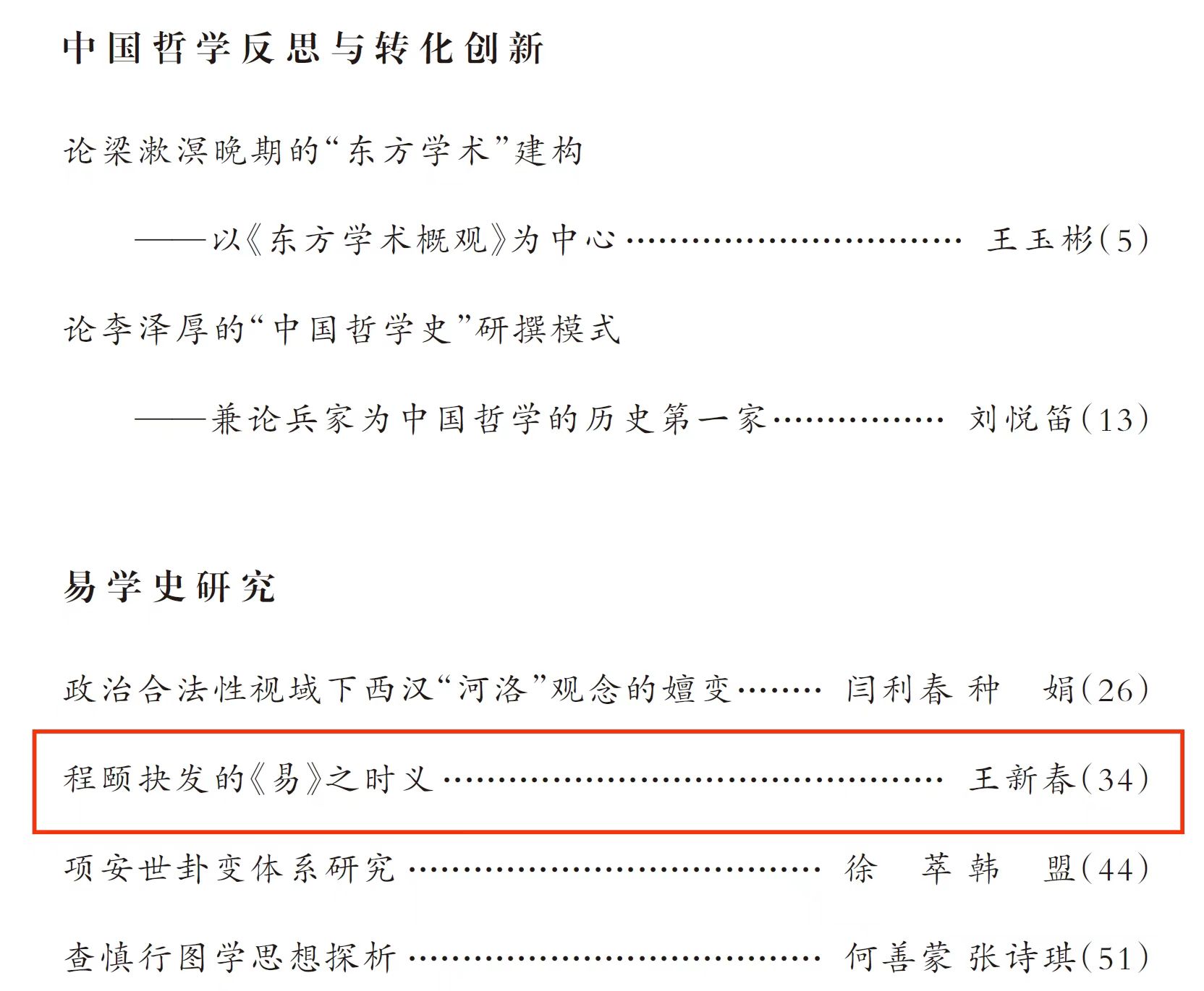 近日,山东大学成人在线免费视频王新春教授在《周易研究》2024年第5期上发表了题为《程颐抉发的<易>之时义》的高质量论文。