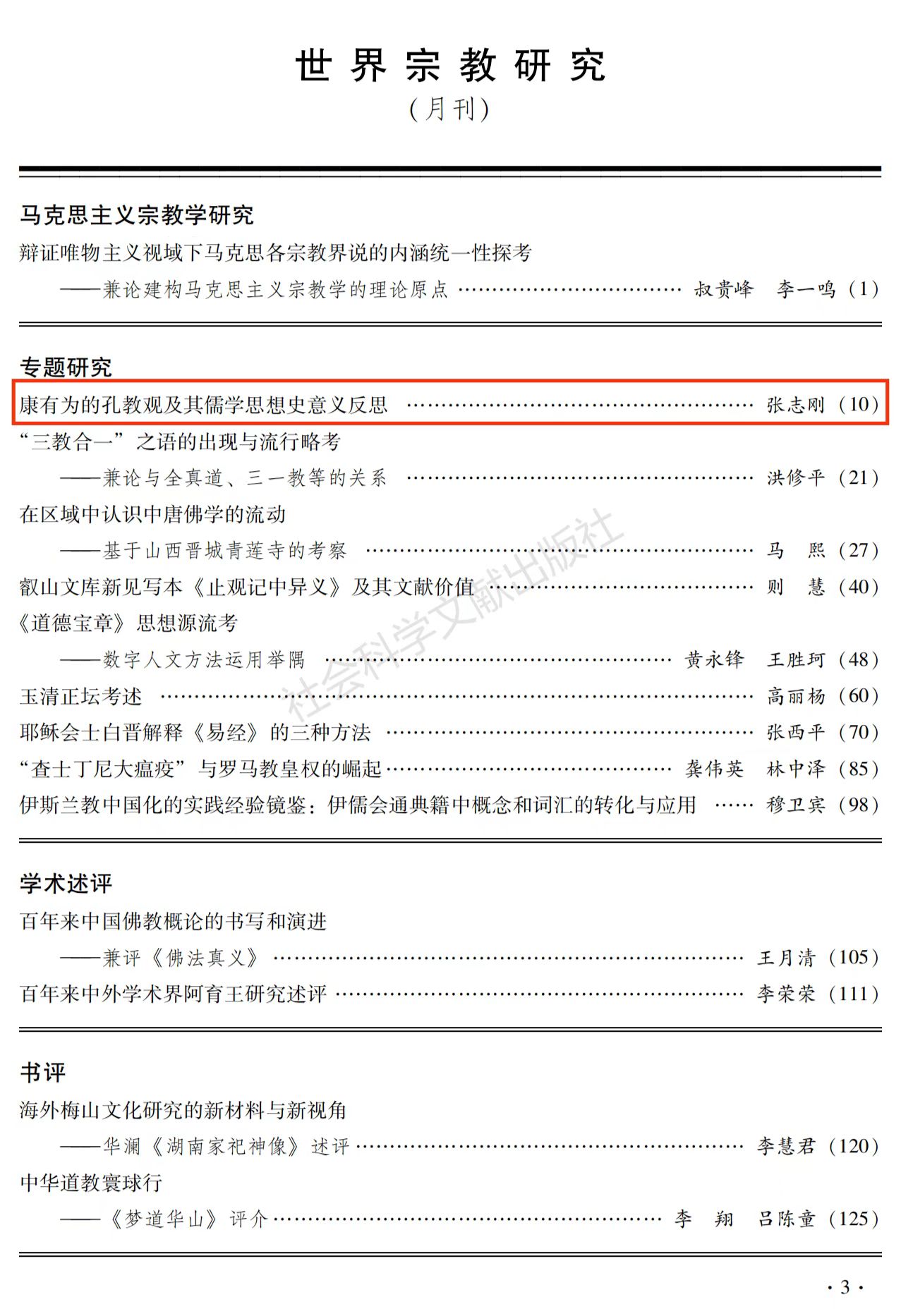 近日,山东大学犹太教与跨宗教研究中心张志刚教授在《世界宗教研究》2024年第10期上发表了题为《康有为的孔教观及其儒学思想史意义反思》的高质量论文。