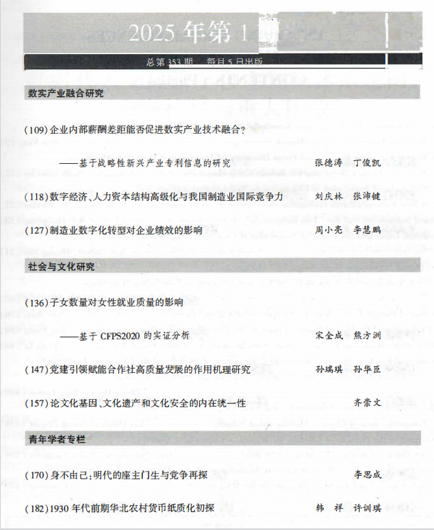 近日,成人在线免费视频宋全成教授在《山东社会科学》2025年第1期上发表了题为《子女数量对女性就业质量的影响——基于CFPS2020的实证分析》的高质量论文。