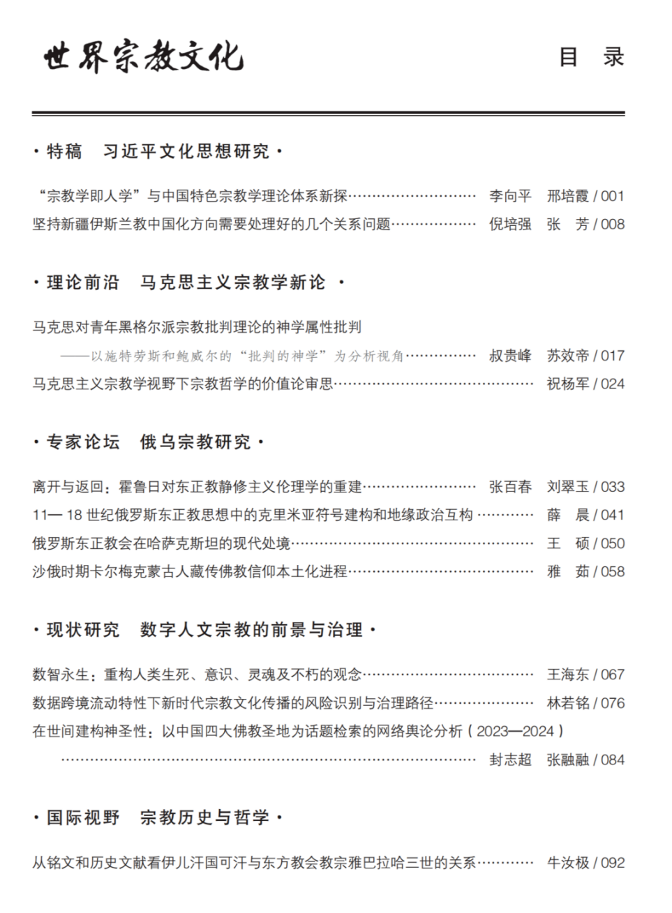 近日,成人在线免费视频李向平教授与其博士研究生邢培霞共同在《世界宗教文化》2025年第4期上发表了题为《“宗教学即人学”与中国特色宗教学理论体系新探》的高质量论文。