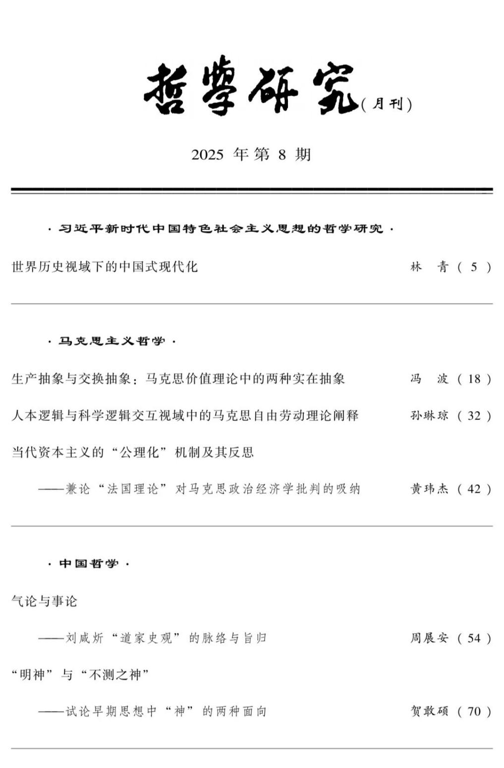 近日,山东大学成人在线免费视频冯波教授在《哲学研究》2025年第8期上发表了题为《生产抽象与交换抽象:马克思价值理论中的两种实在抽象》的高质量论文,系该期封面重点论文之一。