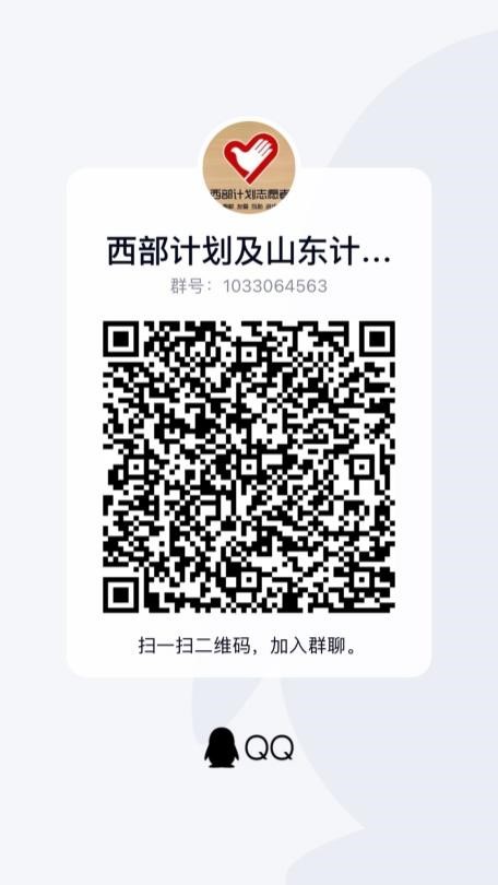 2.山东大学西部计划及山东计划面试、体检等工作后续另行组织,参选学生请务必加入西部计划及山东计划招募工作沟通交流QQ群:1033064563(二维码如下)并及时关注“青春山大”官网及公众号“青春山大”“山大研究生支教团”后续通知。