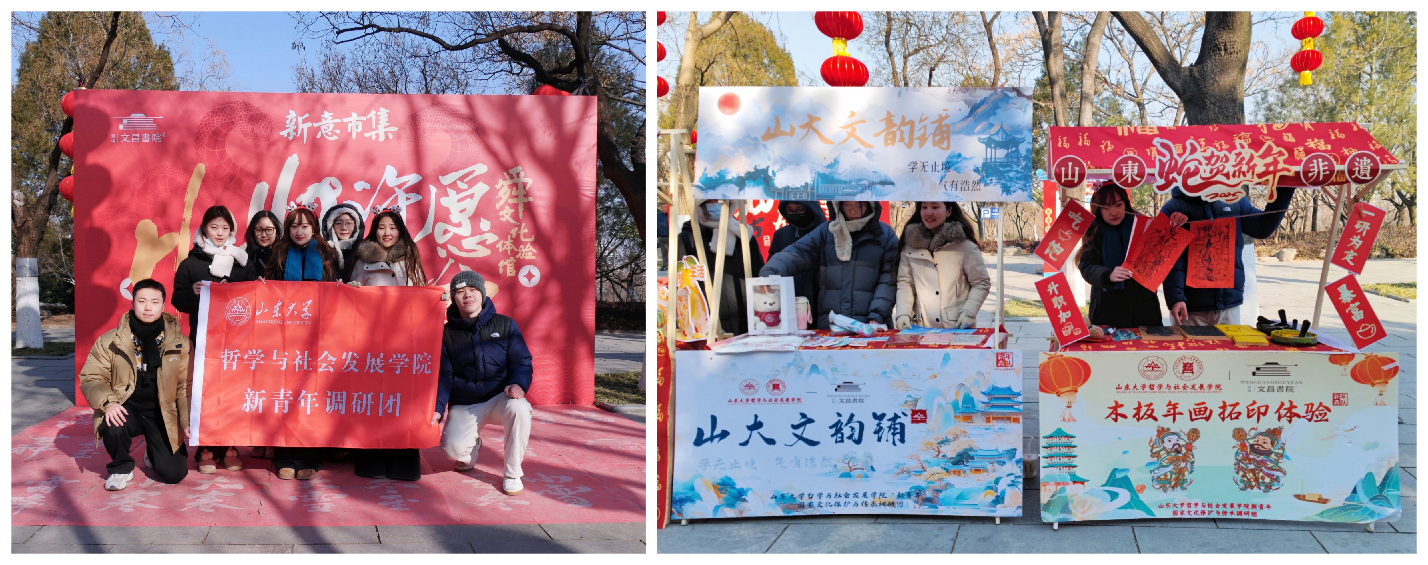 为深入贯彻落实加强非物质文化遗产的保护和传承,推动其创造性转化和创新性发展的工作部署和要求,深入广泛挖掘和保护齐鲁文化资源,为“文化两创”推进贡献哲社智慧,近日,山东大学成人在线免费视频“新青年”文化保护与传承调研团走进济南市千佛山舜文化体验基地,展开了一场别开生面的非遗文化体验之旅。团队成员携手山东大学研究生联合培养基地、启源盛德文化产业发展有限公司,协助举办了齐鲁非遗年俗文化市集,带非遗走进社区,让文化融入生活,带领广大市民体验非遗技艺,以实际行动助力齐鲁文化传承与发展。