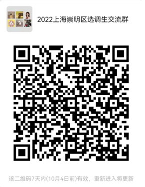 请报名的同学通过微信扫码进入2022上海崇明区选调生交流群。二维码失效后可通过电子邮箱sdjcgggl@163.com”联系工作人员,并备注“姓名—院系—上海崇明区选调”及时入群。