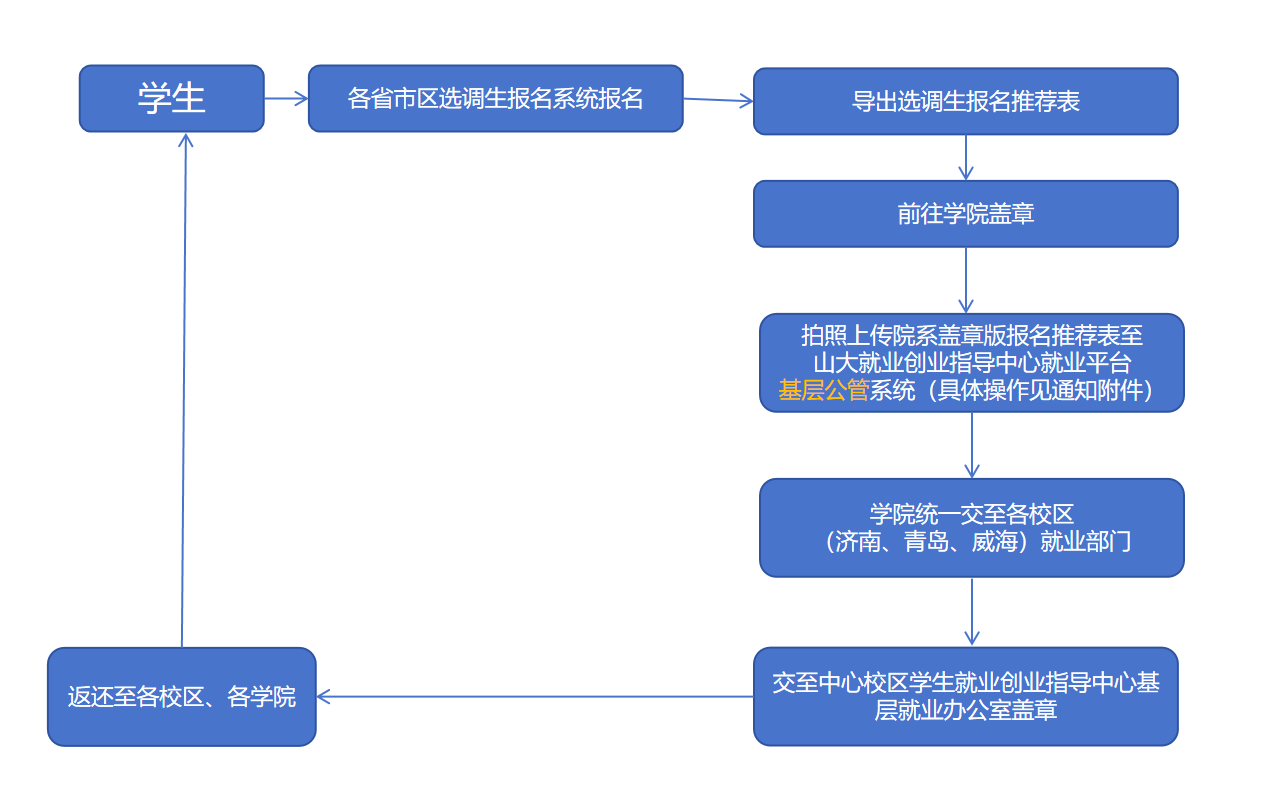 2.同时,考生均需登录山东大学学生就业创业指导中心就业平台基层公管模块填写登记信息,并在附件位置上传院系盖章版《报名推荐登记表》进行报名登记。(系统操作见附件)我处不受理未在基层公管系统登记的《报名推荐登记表》。