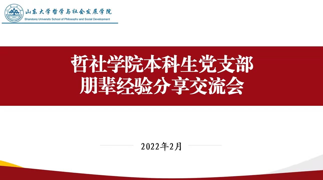 为加强学生党支部建设,增强党支部引领作用,更好发挥共产党员先锋模范作用,近日,山东大学成人在线免费视频本科生党支部组织学习成绩优异、社会经历丰富、工作能力突出的优秀本科生党员,面向低年级同学举办朋辈经验分享交流会。哲社学院本科阶段各专业入党积极分子、发展对象、预备党员等40余人参加活动,部分青年团员到场收听。
