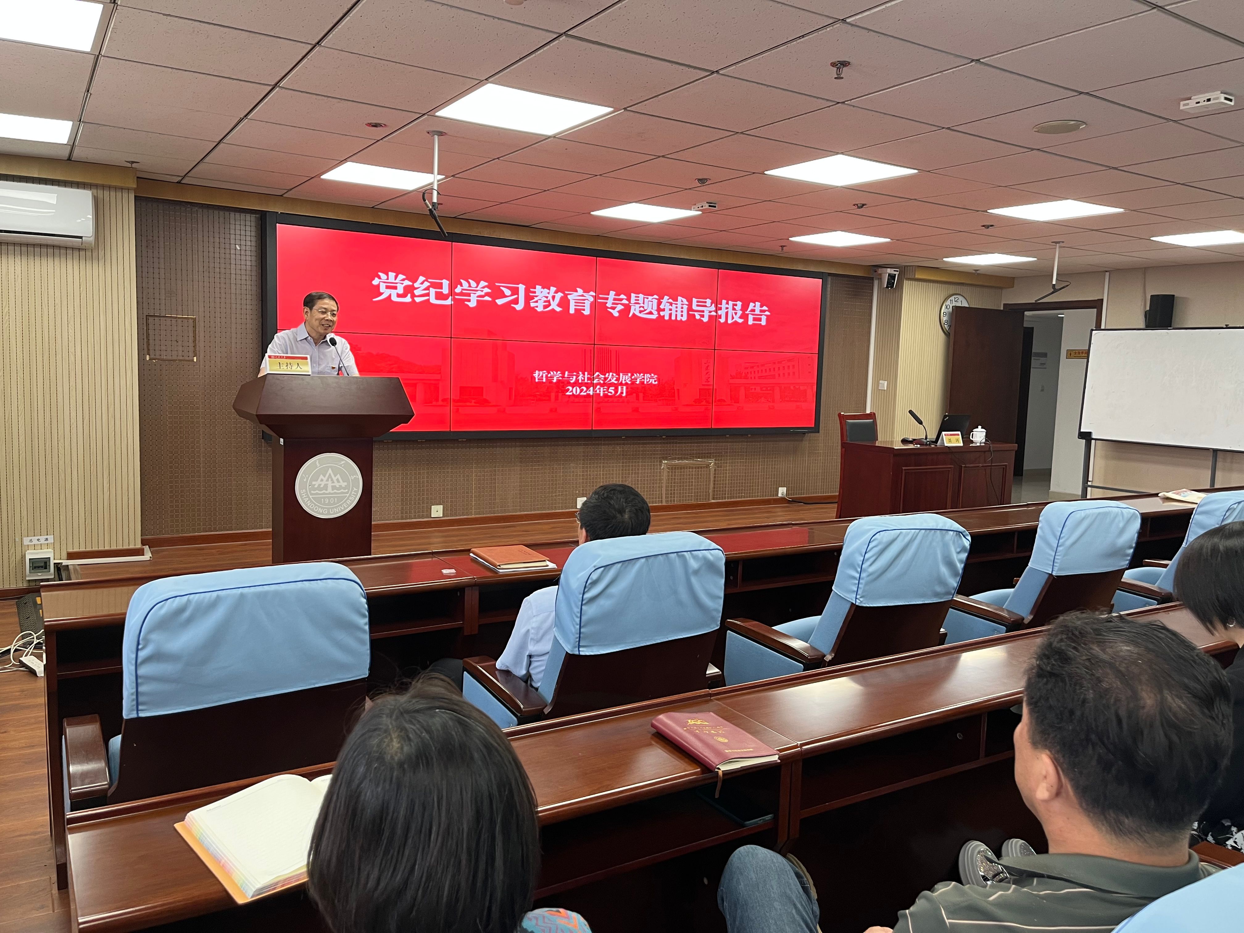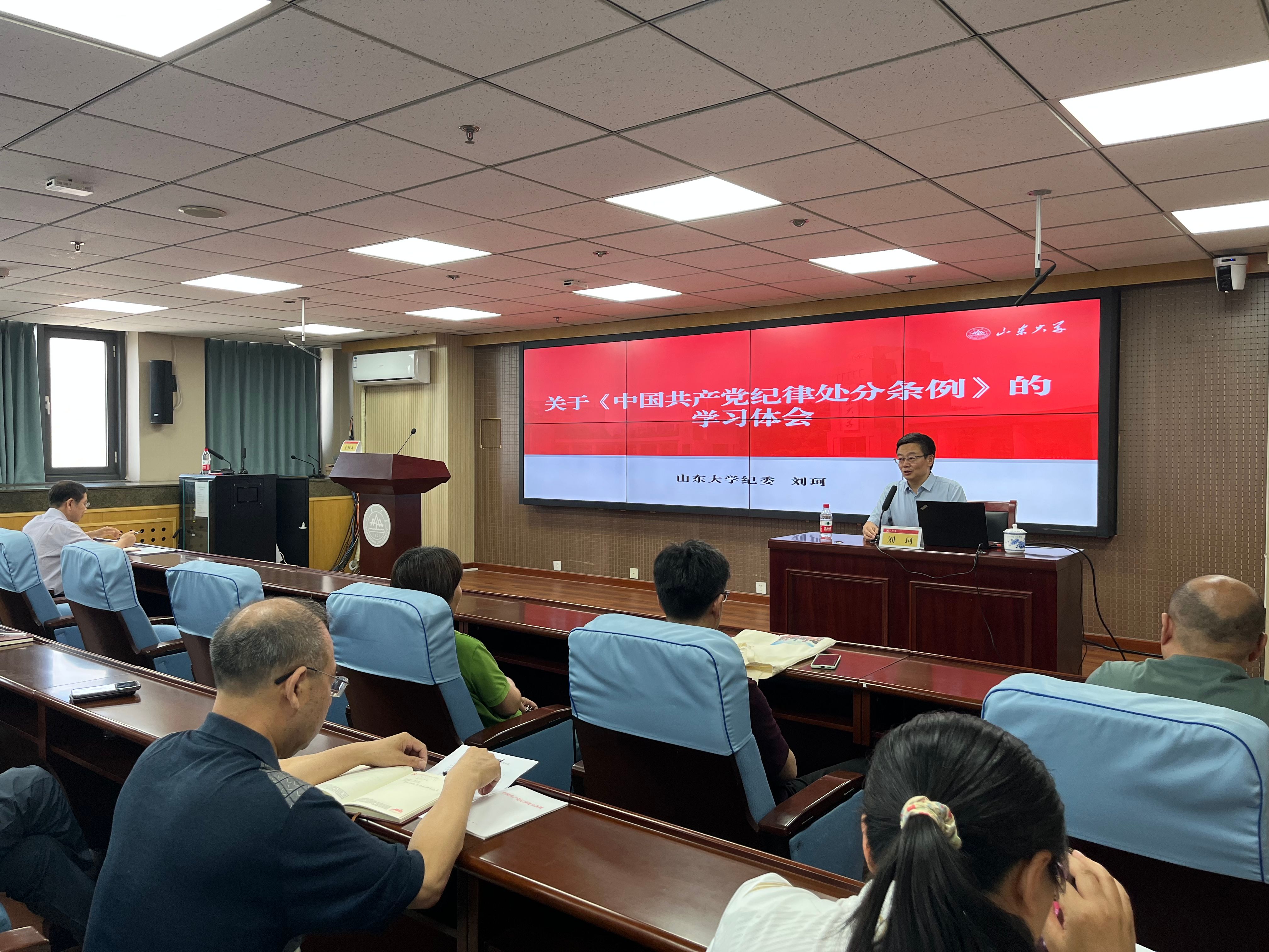 为深入开展党纪学习教育,教育引导全院党员干部学纪、知纪、明纪、守纪,5月30日下午,成人在线免费视频召开党纪学习教育专题辅导报告会,山东大学纪委副书记刘珂应邀作题为“关于《中国共产党纪律处分条例》的学习体会”的专题辅导报告。学院党委书记梅强主持报告会。学院全体教工党员、学生党员代表参加报告会。