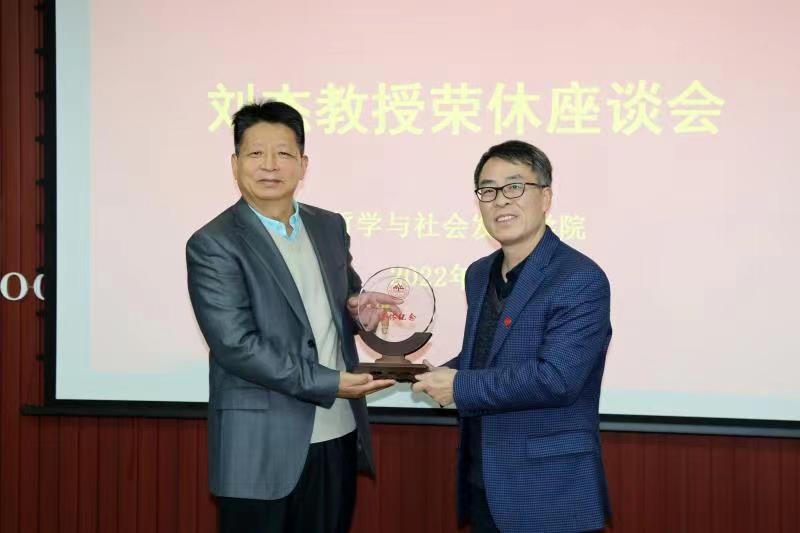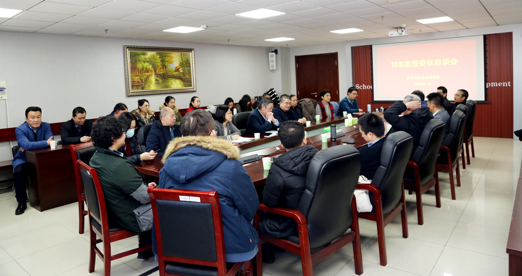 2022年1月11日,哲社学院在知新楼A座举行了刘杰教授荣休座谈会。院长刘森林教授及学院领导班子成员和部分教师代表参加了座谈会,座谈会由党委书记郑倩主持。