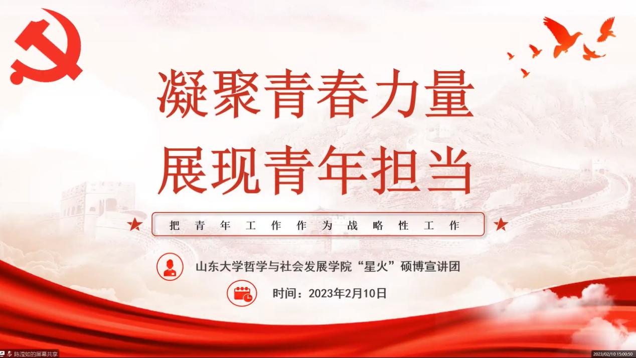 “星火”硕博宣讲团分别面向院研究生会全体学生骨干及2021、2022级全体学生党员开展多场主题宣讲,就二十大报告中对青年工作的描述、“中国式现代化”概念的提出与发展以及新时代中国青年骨干的责任与担当等问题展开论述,累计覆盖听众300余人次,有力推动党的理论精神落地生根;党的二十大精神青年师生宣讲团围绕多个主题,通过线上线下相结合的方式开展普法宣讲,既有对与生活息息相关的法律知识的解读,也有从实际出发,针对社会热点问题的深入分析,充分引导民众正确认识法律法规、维护自身合法权益。