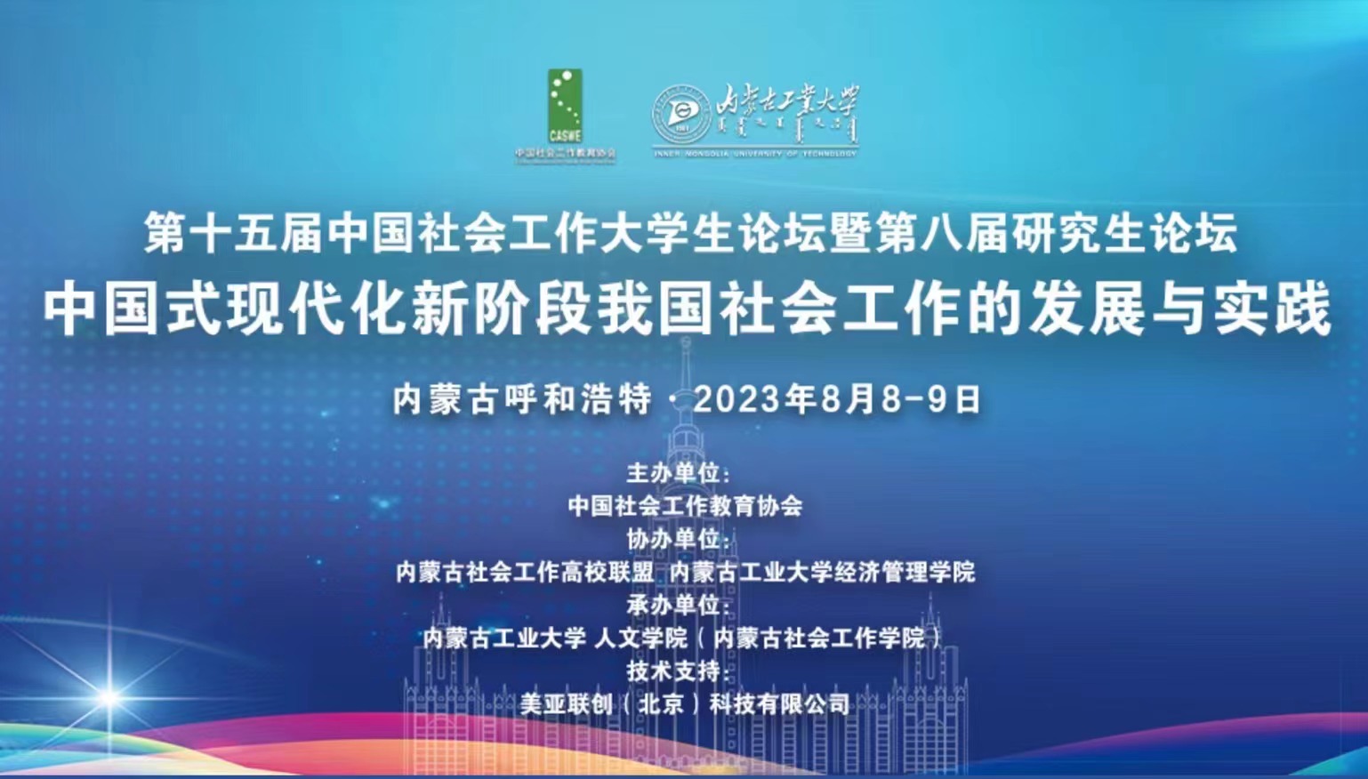 2023年8月8日-9日,由中国社会工作教育协会主办、内蒙古工业大学承办的“第十五届中国社会工作大学生论坛暨第八届研究生论坛”通过线上和线下两种方式成功举办,来自全国100余所高校的400余名社会工作师生参加了本次论坛。