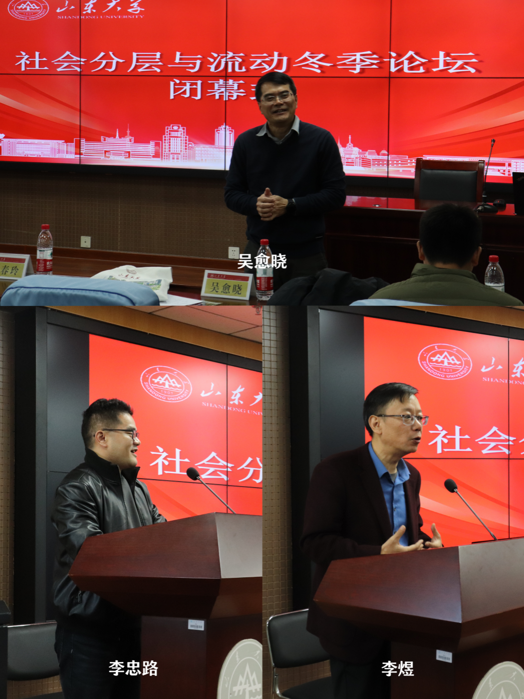 中国社会学会社会分层与流动专业委员会副主任委员兼秘书长、南京大学社会学系教授吴愈晓主持闭幕式并总结了此次冬季论坛。山东大学成人在线免费视频副院长李忠路教授汇报了本次论坛的筹备情况,并对参会嘉宾的大力支持表示了感谢。中国社会学会社会分层与流动专业委员会副主任委员、复旦大学社会学系主任李煜教授发表了闭幕会致辞,对社会分层领域的未来发展做出了积极展望。此外,吴教授特别感谢了山东大学成人在线免费视频对本次论坛的大力支持,感谢全体会务组在多日的志愿工作中为此次会议提供了保障,之后,吴愈晓教授宣布2023年“社会分层与流动冬季论坛”圆满结束。