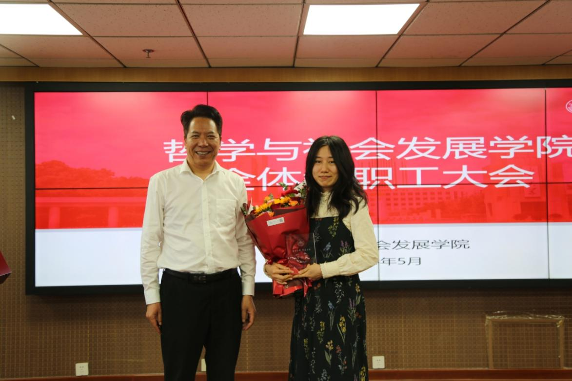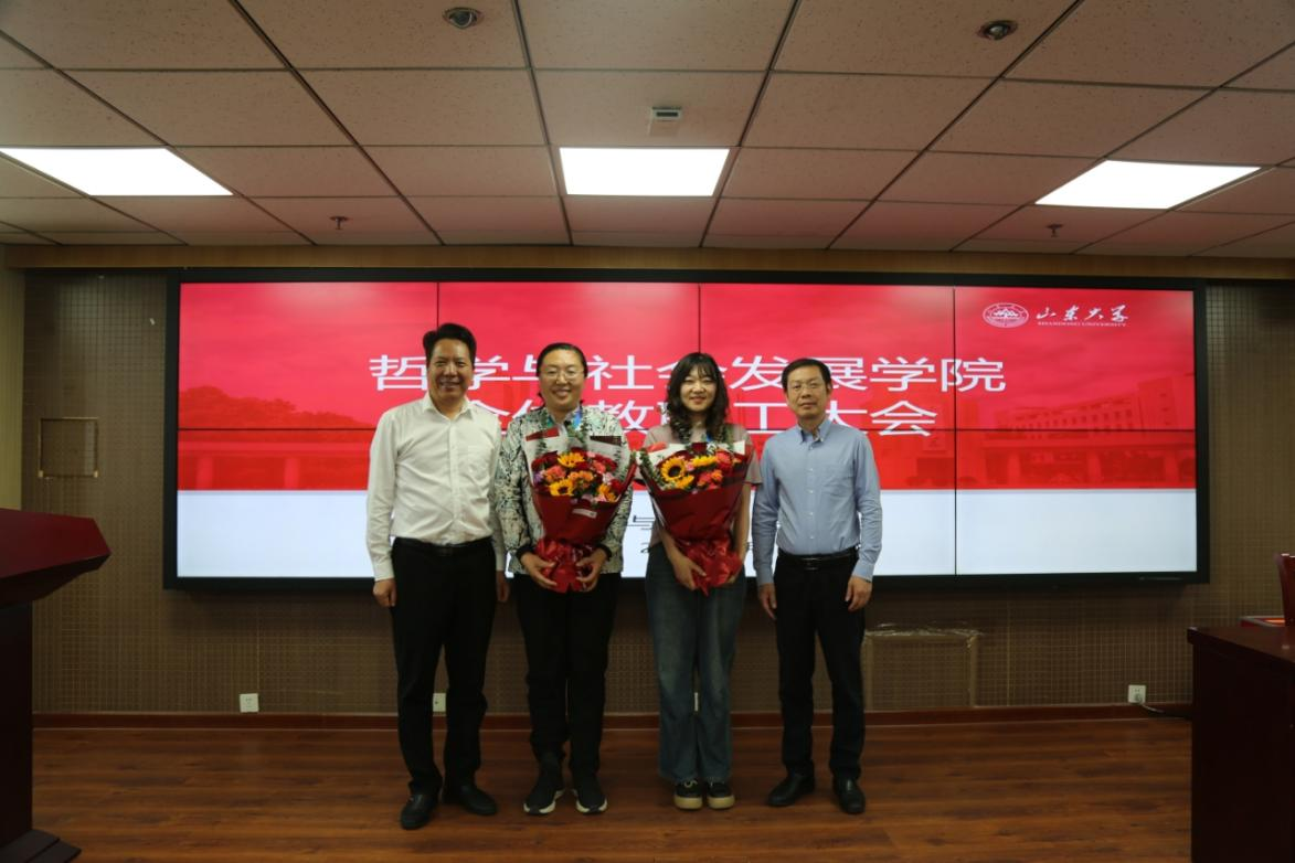 会议举行了新聘教师入职仪式。在热烈的掌声中,曹现强为新聘的讲席教授张志刚、助理研究员李瑶玥颁发了入职名牌,两位教师分别发表了情真意切的入职感言。名牌呈一本书的形状,上面不仅刻有老师本人的名字,还镌刻着“爱智乐群 辉光日新”八个大字,既体现了学院学科特点,更承载着学院的殷切期望与美好祝愿。