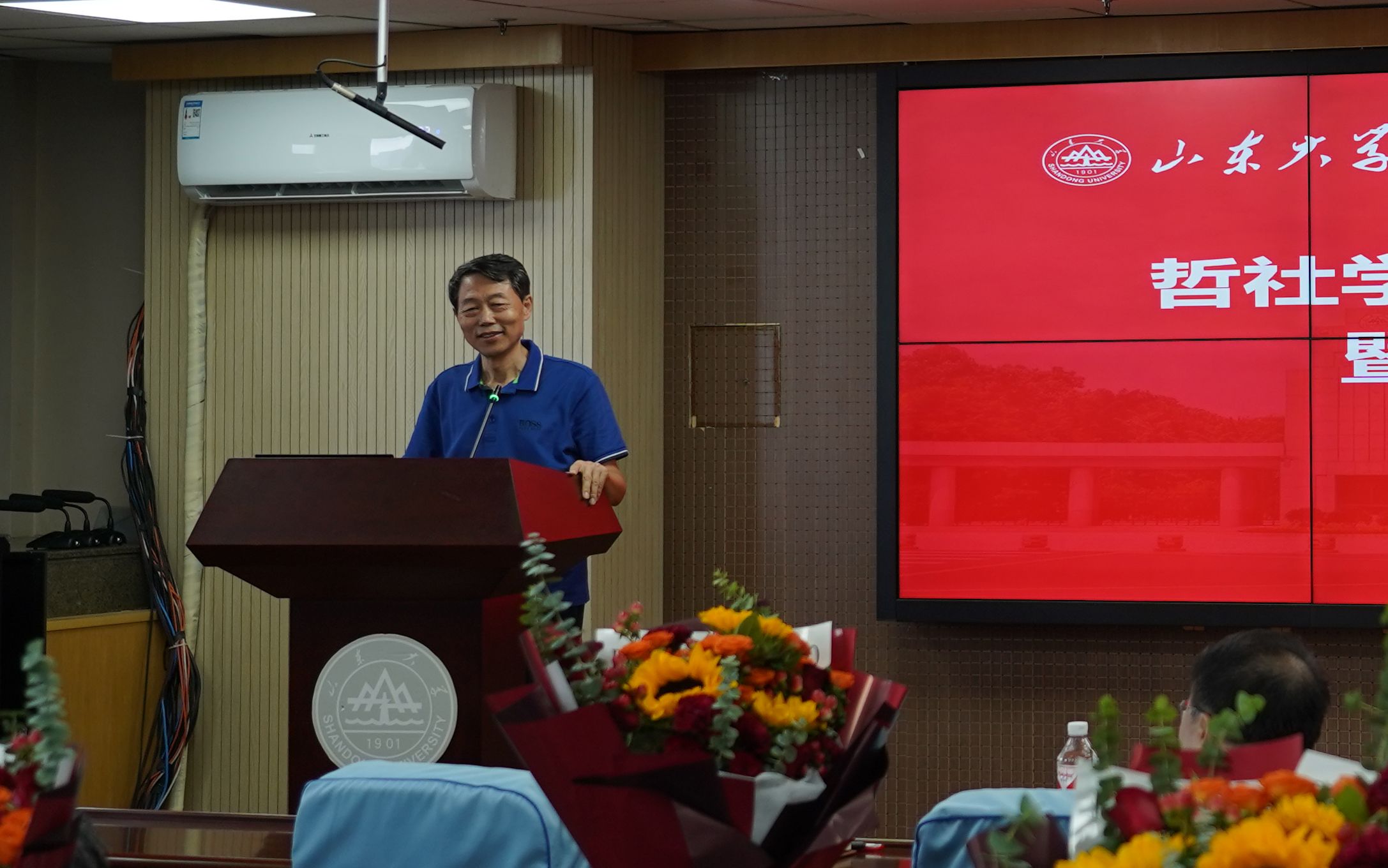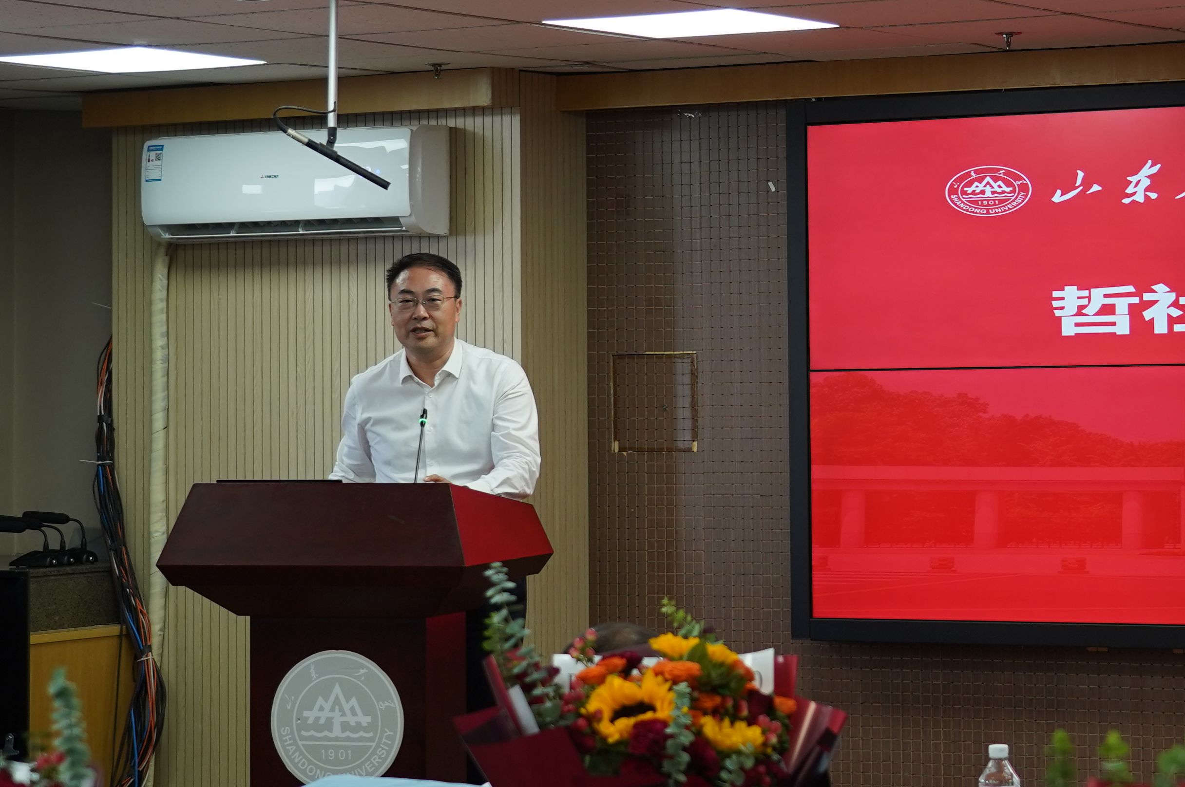 会议最后,曲明军在总结讲话中充分肯定了学院取得的工作成绩,对获奖教师表达了衷心祝福。他强调,全体教职员工要在学院党委正确领导下,在学院领导班子的团结带领下,进一步提高思想认识和政治站位,将推动各项事业发展与深入学习贯彻党的二十届三中全会精神紧密结合起来,与深入学习贯彻正在召开的全国教育大会精神紧密结合起来,与深入学习贯彻学校第十五次党代会精神紧密结合起来,以“闯”“创”“干”的昂扬姿态,锚定学校党委制定的“一五七九”发展思路,用好改革“关键一招”,强化管理服务保障,不断推动学科水平和学院综合实力持续提升,奋力书写“强国建设,山大何为”的哲社篇章,为推动具有中国特色、中国风格、中国气派的哲学社会科学高质量发展做出应有的贡献。