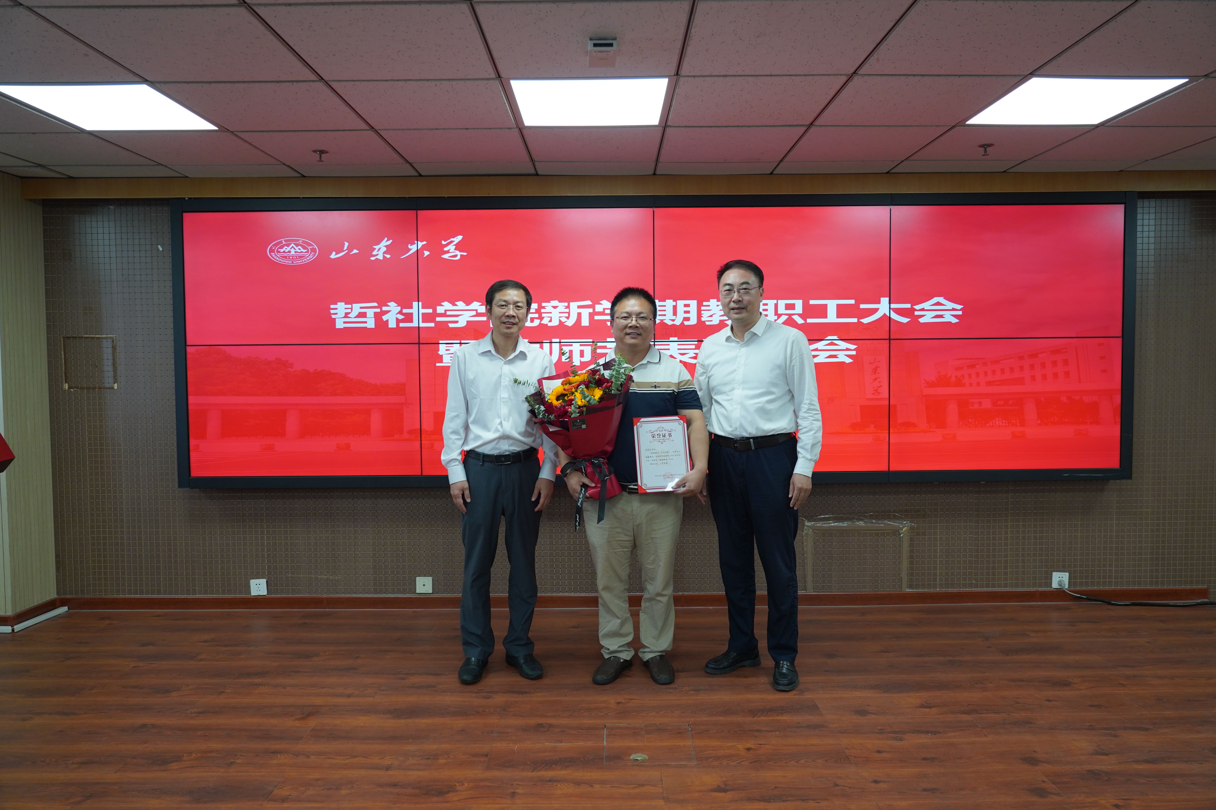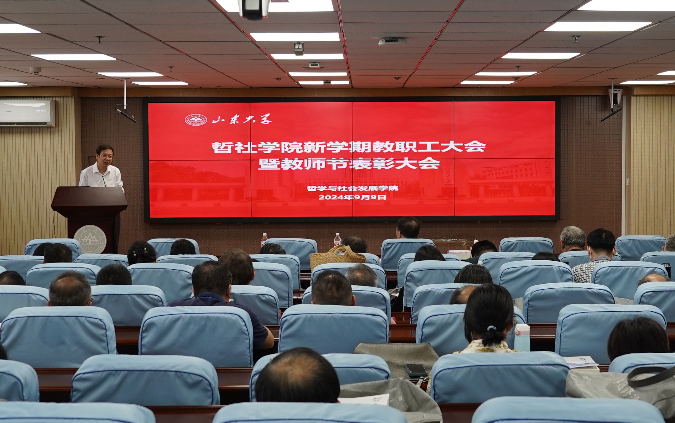 在第40个教师节来临之际,为深入学习贯彻《中共中央国务院关于弘扬教育家精神加强新时代高素质专业化教师队伍建设的意见》,大力弘扬教育家精神,9月9日下午,哲社学院召开新学期全体教职工大会暨教师节表彰大会,学校党委常委、组织部部长曲明军出席会议,学院党委书记梅强主持,学院全体教职工参加会议。
