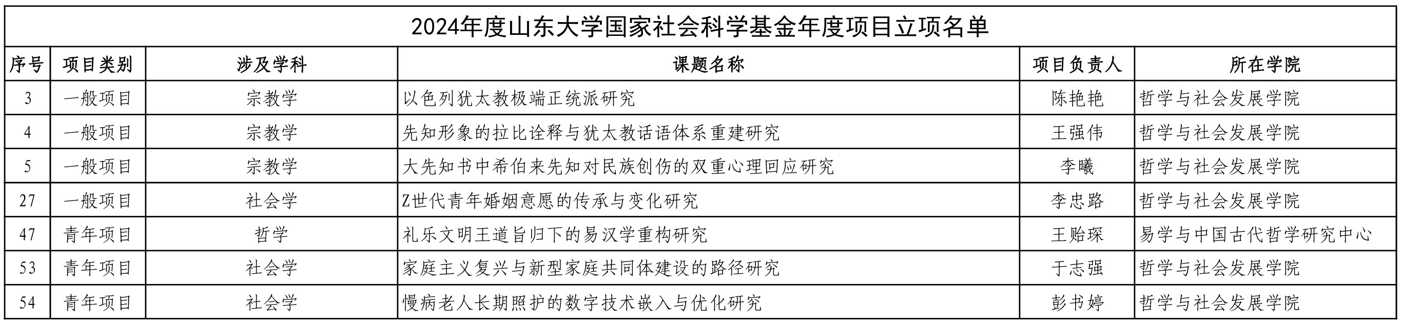 近日,全国哲学社会科学工作办公室公布了2024年度国家社科基金年度项目立项名单,山东大学成人在线免费视频共有7项课题立项,立项数量在全校各学院中位列第二。其中,一般项目4项,青年项目3项。
