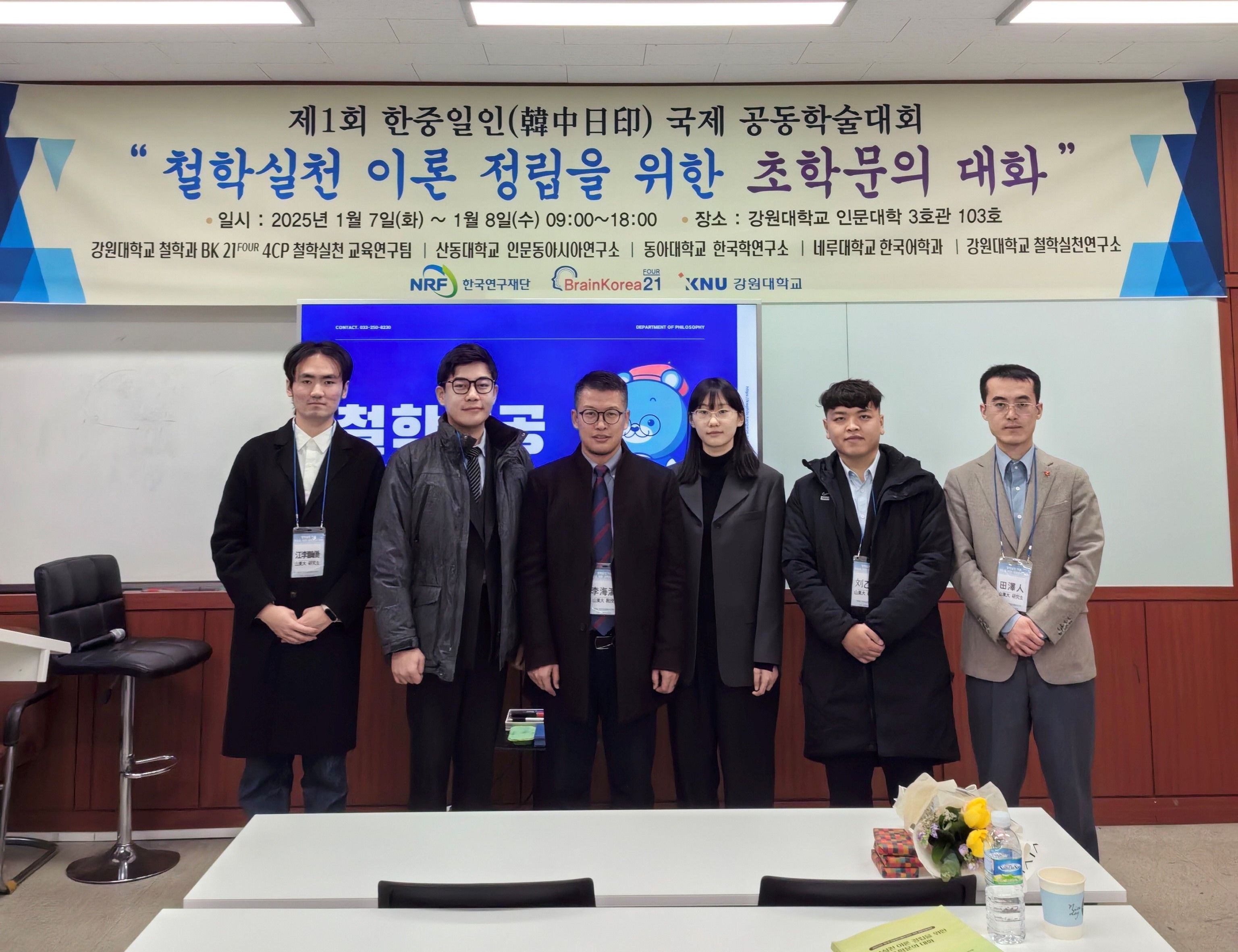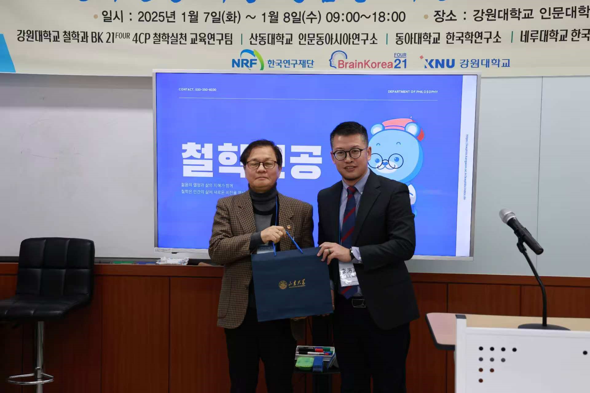 2025年1月6日至9日,山东大学成人在线免费视频李海涛副教授受邀率人文东亚研究团队访问韩国国立江原大学,参加第一届国际哲学实践会议(The International Conference on Philosophical Practice)。本次会议主题为“Transdisciplinary Dialogue for Establishing Philosophical Practice(建立哲学实践的跨学科对话)”。会议旨在将东亚儒·释·道、中西哲学比较研究的讨论,推进至哲学的实践与应用层面。成人在线免费视频博士后宋陆,博士研究生田泽人、刘乙澜,硕士研究生江李鹏侨、刘致宁一同参会并发表学术论文。