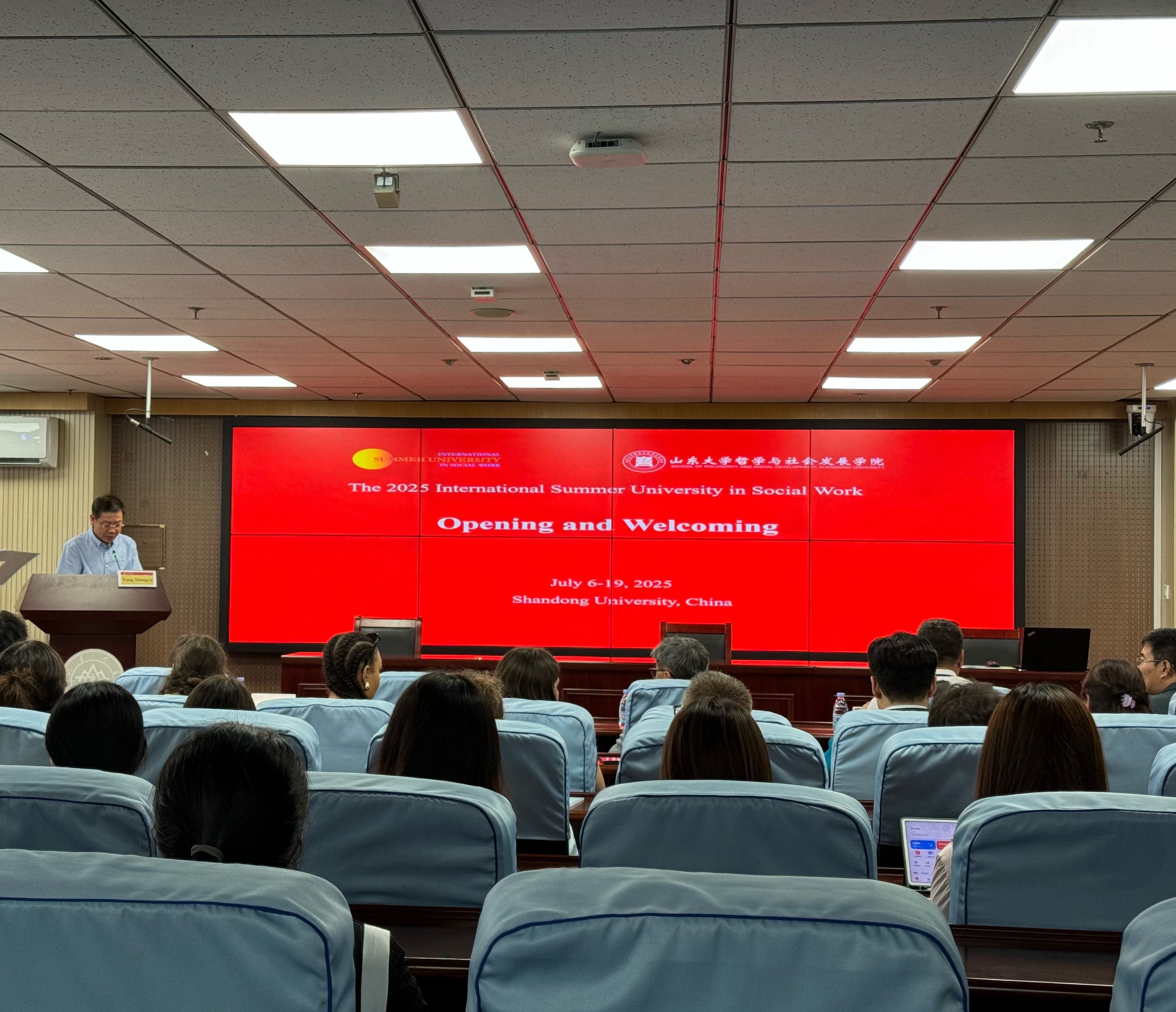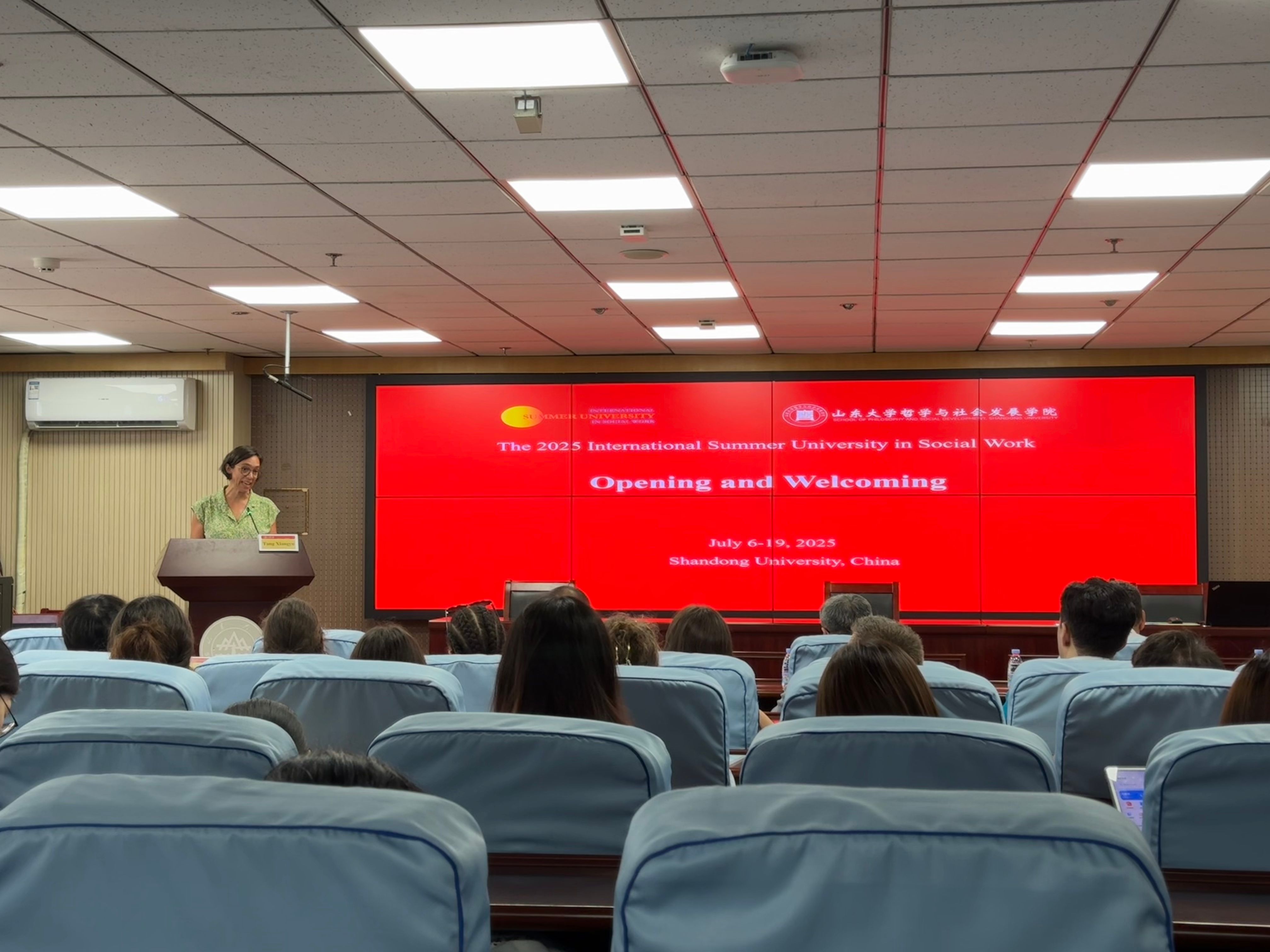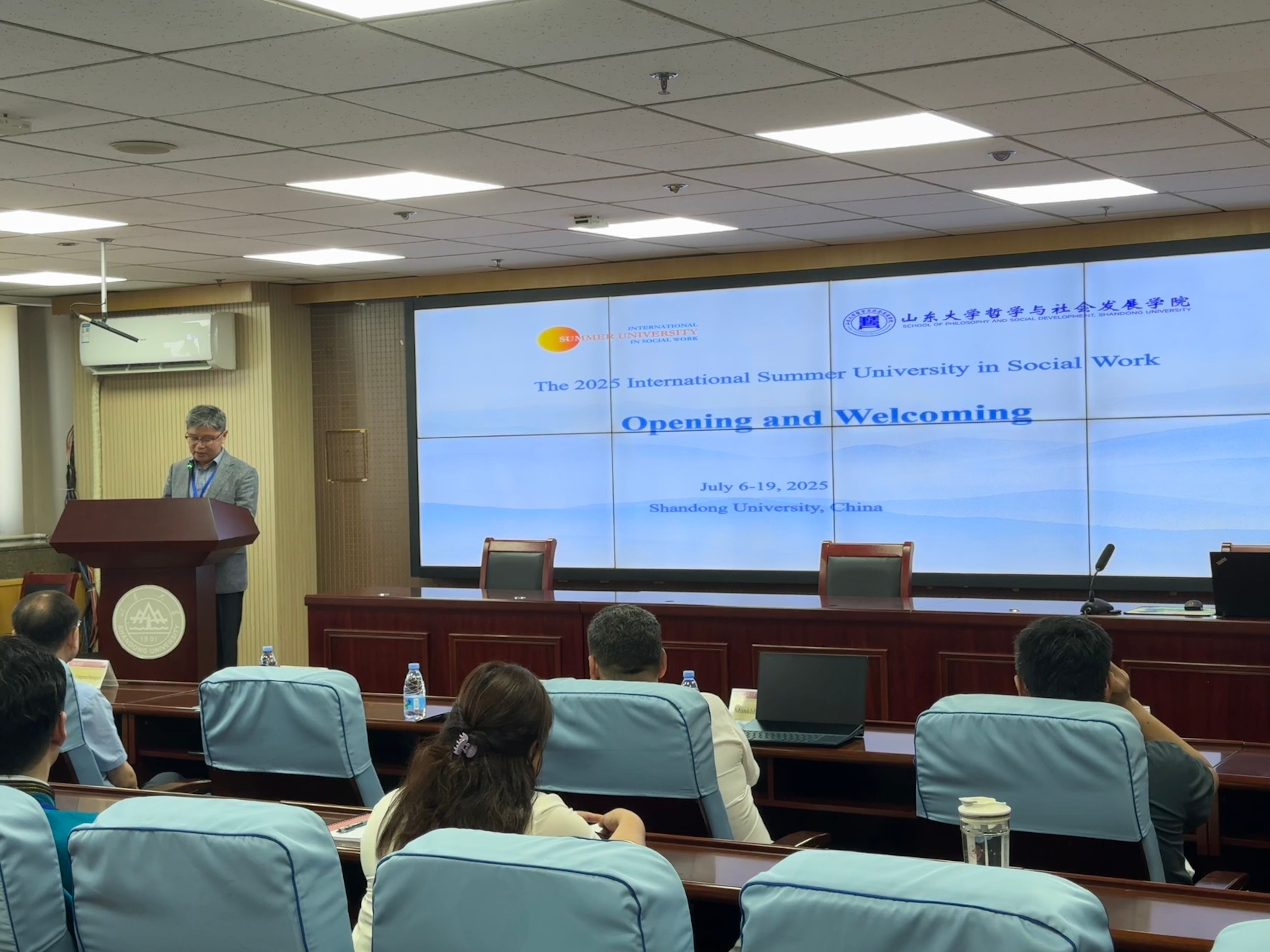 7月7日上午,山东大学成人在线免费视频社会工作国际暑期学校开幕式在知新楼A1521报告厅顺利举行。本次社会工作国际暑期学校的主题为“跨学科与社会工作”,来自香港中文大学(CUHK)、瑞士西部应用科技大学(HES-SO)、以色列希伯来大学(HUJI)、蒙古国立大学(NUM)、印度Rajagiri社会科学学院(RCSS)、加拿大不列颠哥伦比亚大学(UBC)、美国加利福尼亚大学洛杉矶分校(UCLA)、澳大利亚西悉尼大学(WSU)和山东大学(SDU)等国内外知名学府的师生40余人参加本次国际暑期学校。