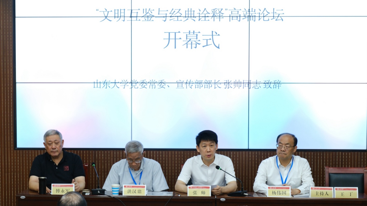 2025年7月11日至14日,“文明互鉴与经典诠释”高端论坛在山东大学知新楼A座115报告厅成功举办。此次高端论坛由山东大学中国阐释学研究中心、北京市社会科学院经典阐释学研究中心和中国现代外国哲学学会诠释学专业委员会联合举办,《中国诠释学》编辑部、山东大学“文明互鉴视域中的汉语哲学”人文社科创新团队承办。来自北京大学、中国社会科学院、中国人民大学、北京市社会科学院、中山大学、山东大学等高校及科研机构的领导与专家学者与会出席。