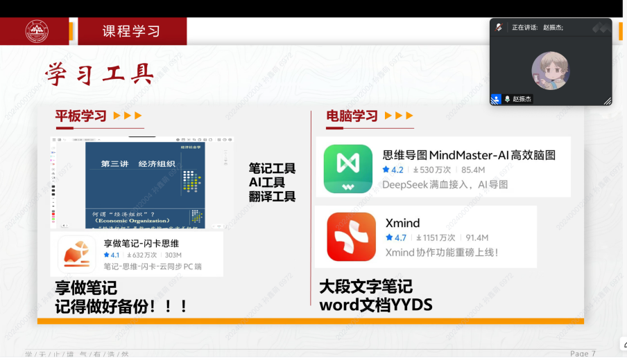 2023级哲学强基班刘冰霄以“等风来不如追风去”为核心,建议新生通过任务拆解、区分事务轻重缓急等方式来避免“无效忙碌”。学习上,她推荐从导论类书籍入手,构建知识框架,善用各类学习资源,并强调英语对哲学学习的重要性;针对生涯迷茫问题,她提出“不确定是常态”,建议新生先夯实专业基础、在试错中明确发展方向。此外,此外,刘冰霄以“爱智乐群,弘德修远”院训为指引,详细介绍了中心校区场馆预约、宿舍设施等日常细节,为新生提供“一站式”生活指南。