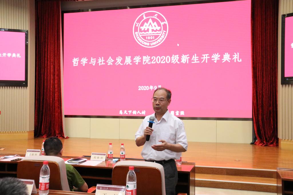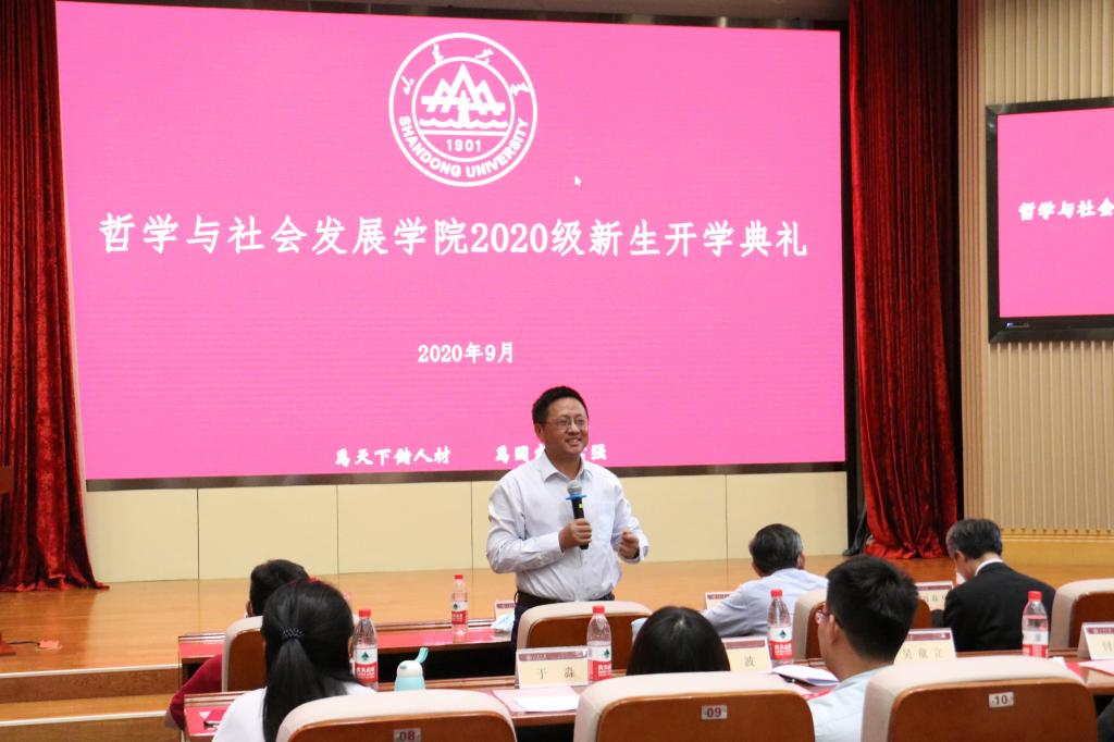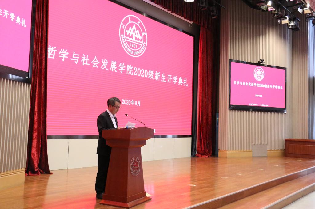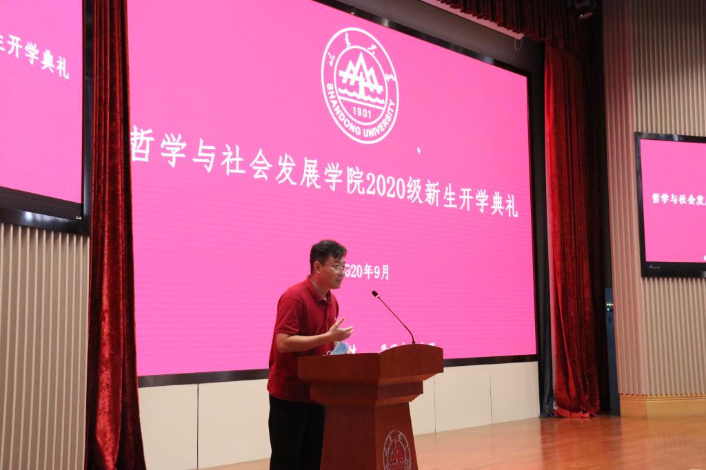 开学典礼在隆重的国歌声中拉开序幕。刘森林在致辞中表达了对2020级新生的热烈欢迎。他介绍了学院的发展历史、学科发展现状和特色以及发展前景,并对同学们的学习生活提出了建议和期待。他提到,目前世界和中国都面临着重大转变的契机,每个学科、专业都面临发展的新机遇。百年不遇的疫情,给正在快速变迁的世界添加了更多不确定因素。新的变化需要新知识、新思想、新方法、新视野、新格局,需要我们做出新的探索、新的思考、新的研究。对此,他建议新生们学好专业,但不拘泥于专业视野;鼓励同学们好好利用山东大学和哲社学院学科多样、融合的优势,在学好各自专业的同时进一步拓展视野,确立大格局、大胸怀,做新时代的新文科生;练就拿手本领,掌握主动权,使自己在这个变动不居的世界中立于不败之地;认识自己,不盲从,找到适合自己的人生道路,把自我的发展与社会、国家、世界的发展贯通起来,做到既对自己负责,又对他人、社会、世界负责。刘森林的讲话,充满了对2020级新生的希冀和祝愿,也启迪新生奋发有为,勇于担当。