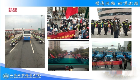 为了坚决打赢疫情攻坚战,在党中央的领导下,国家卫生健康委员会和各个省市开始组建医疗队支援湖北,郭丙秀由于其出色的业务能力成为了山东省首批重症医疗组的一员。她于大年初一踏上抗疫征程,抵达疫情严重程度仅次于武汉的黄冈。战疫初期,设备不全,物资匮乏,郭丙秀和队友们喊着“没有条件,创造条件;条件不够,智慧来凑”的响亮口号改进仪器设备,筹建ICU病房。尽管天气寒冷,身体冻得颤抖,他们还是竭尽全力给予病人最大的温暖与关怀,数次把病人们从死亡边缘抢救回来,把不可能变为可能。他们上班时相互鼓励,下班后相互安慰倾诉,一起扛过了最艰难的日子。终于在3月8日,他们迎来了胜利的曙光——黄冈病例清零。3月21日归城时,郭丙秀在一条条横幅上感受到了黄冈人民对山东支援队的深情厚意。她称这份感激不仅仅属于他们,更属于给予他们支持和关爱的后方大家庭。她向山东大学、山大校友会、各位志愿者以及同学们的关心和牵挂表达了谢意并保证未来将会以更饱满的精神面貌投入到工作岗位中,让青春在白衣下焕发更加绚烂的光彩。