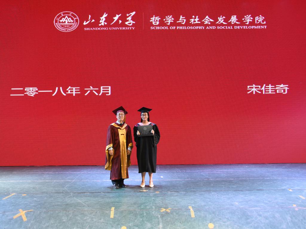 典礼后举行了毕业生学位授予仪式。仪式上,哲社学院副院长、院学位评定委员会副主席陈坚宣读了山东大学学位授予决定。随后,毕业生身穿学位服、头戴学位帽,依次登台,刘森林教授逐一为毕业生拨正流苏、颁发学位证书,并合影留念。仪式在全场师生共同唱响的《山东大学校歌》中结束。