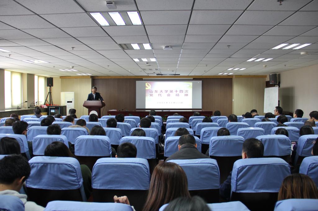 11月22日,哲社学院举办山东大学第十四次党代会精神宣讲会。第十四次党代会宣讲团第三组成员郑倩作宣讲报告,学院全体教职工与学生代表参加了宣讲会。