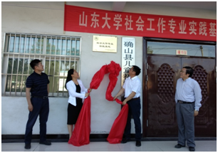 实地帮扶期间,高鉴国教授与5位社会工作专业硕士研究生结合当地留守儿童服务的重点工作开展专业实习。23日上午,在确山县福利中心举办“山东大学社会工作专业实践基地”挂牌仪式。确山县人民政府副县长王月红、山东大学成人在线免费视频副院长陈坚教授共同为“山东大学社会工作专业实践基地”揭牌。县民政局局长胡中全、社会工作系主任高鉴国教授,县福利中心工作人员和社会工作专业硕士研究生一起参加了挂牌仪式。