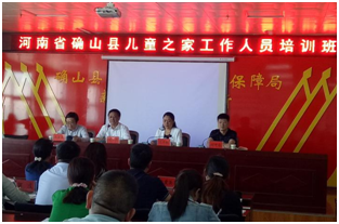 与确山县民政局合作举办的“确山县儿童之家工作人员培训班” 于5月23日进行。全县各镇(街道)民政所所长和村(社区)儿童福利主任、县民政局工作人员、驻马店市“新未来”社工服务中心的社会工作者共计80余人参与了本次培训。开班仪式上,县人民政府副县长王月红同志指出,山东大学送来的此次儿童之家工作人员培训班,在确山县干部教育培训史上是第一次。山东大学成人在线免费视频副院长陈坚教授引用了习近平总书记的讲话:“民政工作是‘菩萨’事业”,山东大学成人在线免费视频参与主办这次培训目的是提升对农村地区留守儿童群体服务的质量,为贫困地区社会工作人才队伍建设和脱贫攻坚贡献一份力量。