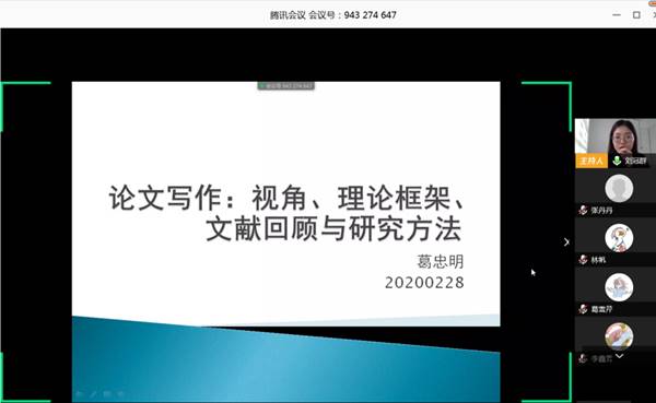 2月28日,哲社学院首期“线上开学季”讲座顺利举行,社会工作系教授葛忠明采用线上直播的方式作了题为“论文写作:视角、理论框架、文献回顾与研究方法”的讲座报告,社会保障专业刘冠群同学主持。200余名来自五湖四海的同学千里共学堂,参加本次线上讲座。