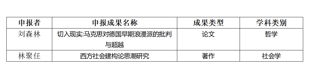 近日,教育部印发《关于第八届高等学校科学研究优秀成果奖(人文社会科学)奖励的决定》。哲社学院哲学系刘森林教授的论文《切入现实:马克思对德国早期浪漫派的批判与超越》与社会学系林聚任教授的著作《西方社会建构论思潮研究》两项成果获得科学研究优秀成果二等奖。