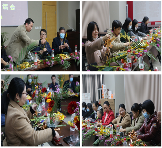 郑倩和刘森林对学院女教工致以节日的祝福和殷切的关怀,对女教工的工作予以肯定,并和大家一起插花。在场女教工边插花边茶话,整个活动气氛热烈,其乐融融,在轻松欢快的气氛中进行,大家既放松了身心,又促进了交流。期间,很多老师的作品引得喝彩连连,大家互赞互赏,收获颇丰,圆满达到预期效果。