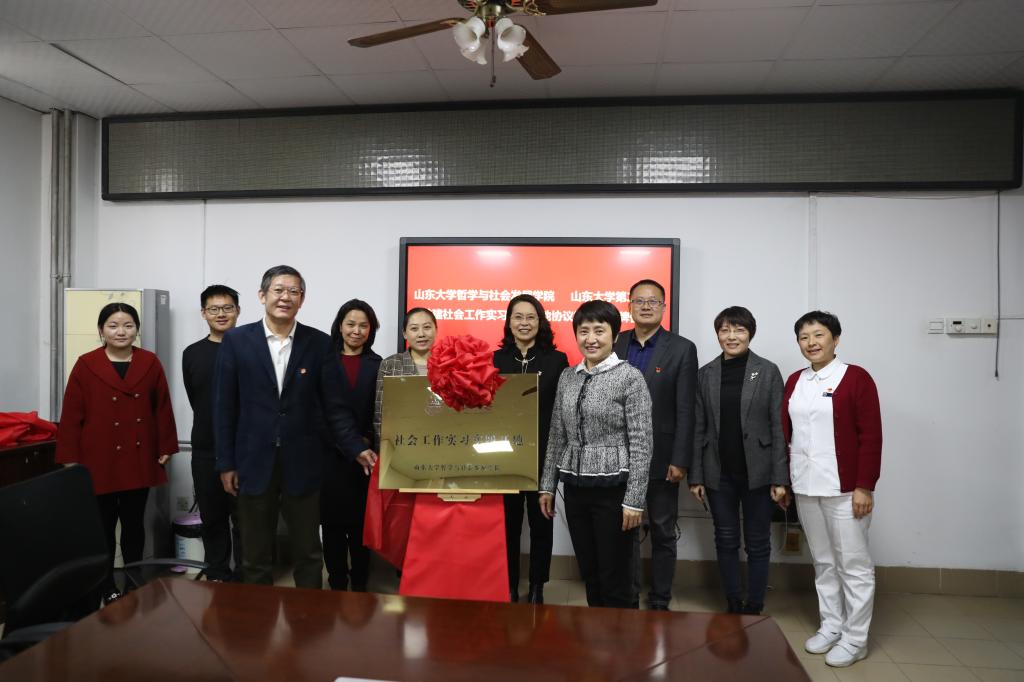 3月24日,社会工作实习实践基地揭牌仪式在山东大学第二医院举行。第二医院党委书记柳丽华、学院党委书记郑倩为实习基地揭牌,合作双方共同签署了共建协议。