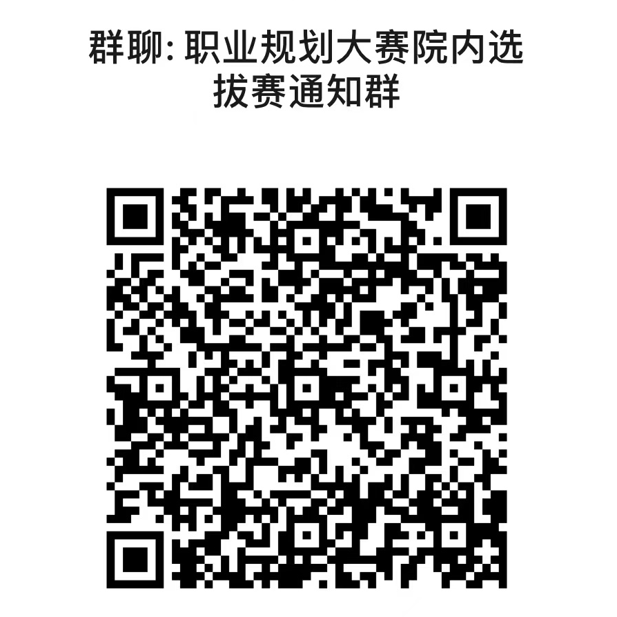 请参赛选手于11月19日21:00前扫描下方二维码加入院内选拔赛通知群,及时参与答辩抽签,关注群内通知。