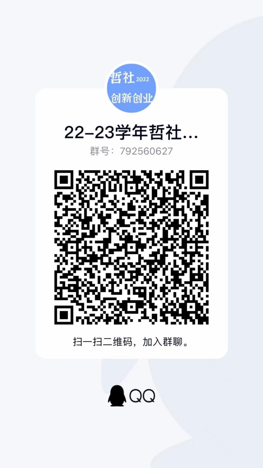 2.大赛安排如有变动,哲社学院实创部会第一时间在“22-23学年哲社创新创业交流群(792560627)”内通知,请各参赛团队队长务必加入: