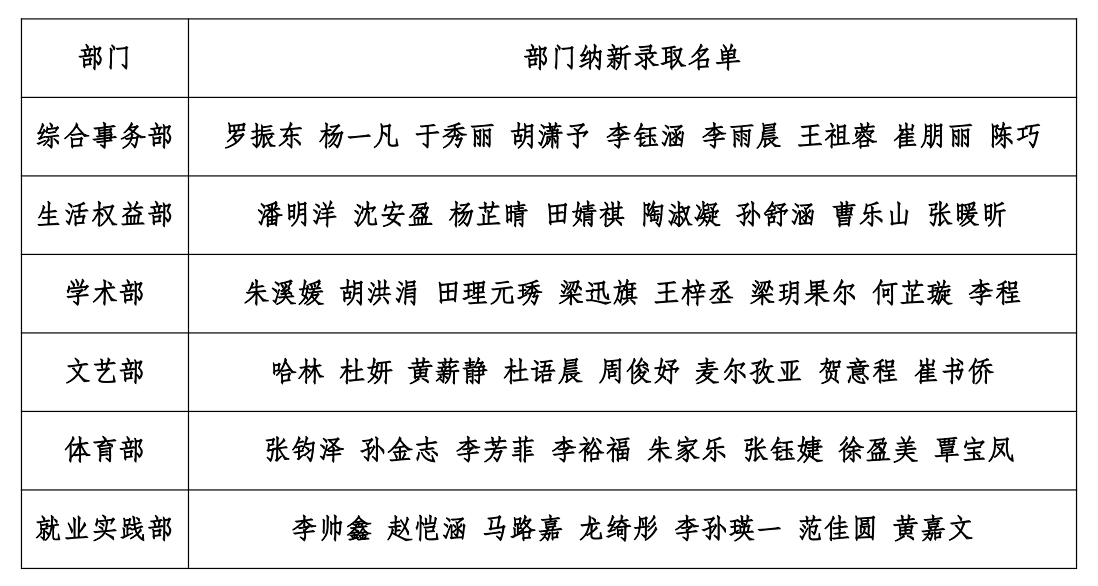 哲社学院第二十六届学生会、第六届媒体与创意中心、第四届青年志愿者协会暨第二届学生科学技术协会纳新录取结果公示