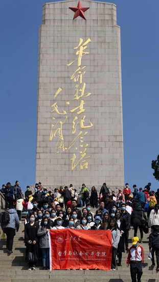 随后,同学们前往革命英雄纪念塔,向为民族解放运动献身的先烈们默哀致敬,随后大家一起在纪念塔前合影留念,与沉睡的英杰们共享这一清明时光。“你若记得,他便不悔。”历史的车轮滚滚向前,有些人、有些事我们会一直铭记。20级社会学二班代煜昊表示:“没有革命先辈们的流血牺牲,就没有我们今天的幸福生活,我们应当传承先烈们的革命精神,在学习与生活中做出我辈的贡献。”20级哲学强基班曹欣驰表示自己深深地被先烈们的牺牲奉献精神所打动,希望能够坚定理想信念,用实际行动践行爱国主义。通过前往英雄山接受爱国主义教育,同学们感受到到烈士们舍生忘死的牺牲精神,想对他们说:“这盛世,如您所愿。”