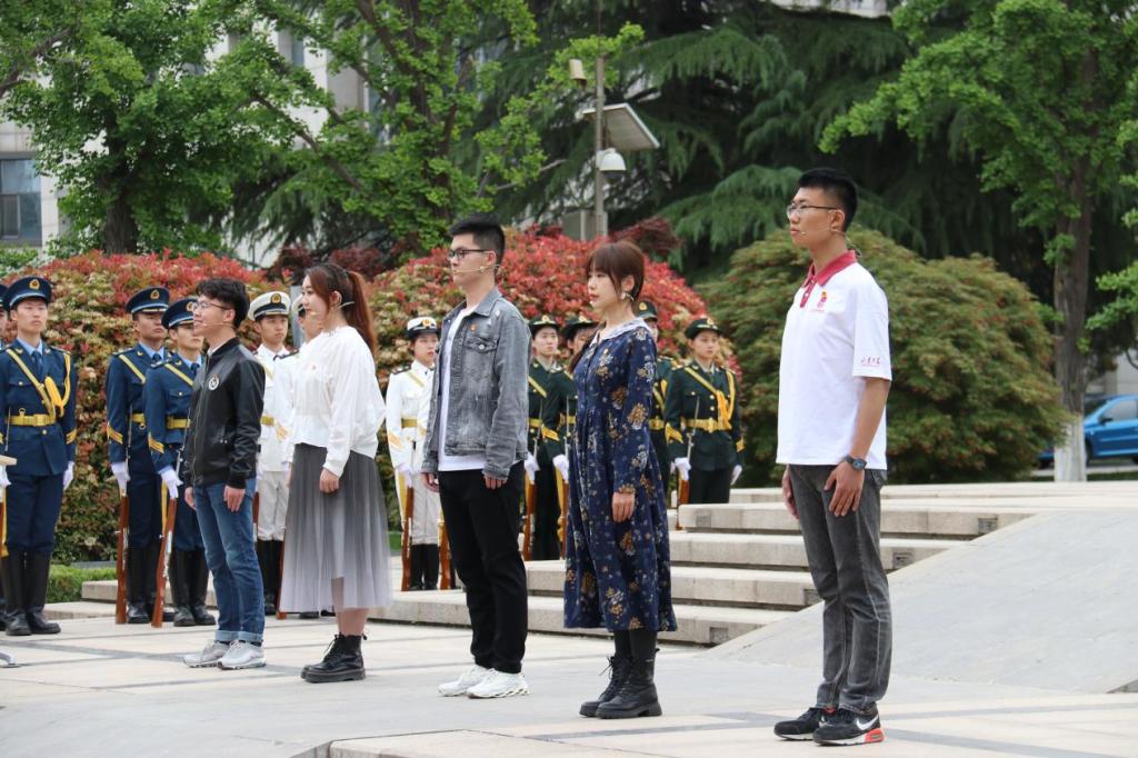 接下来在山东大学管理学院2019级硕士研究生戚真的带领下,团员们郑重地举起右拳,目光灼灼,语调铿锵,在国旗下重温入团誓词,表达了山大学子勤奋学习,不忘初心,为共产主义事业不断奋斗的坚定决心。
