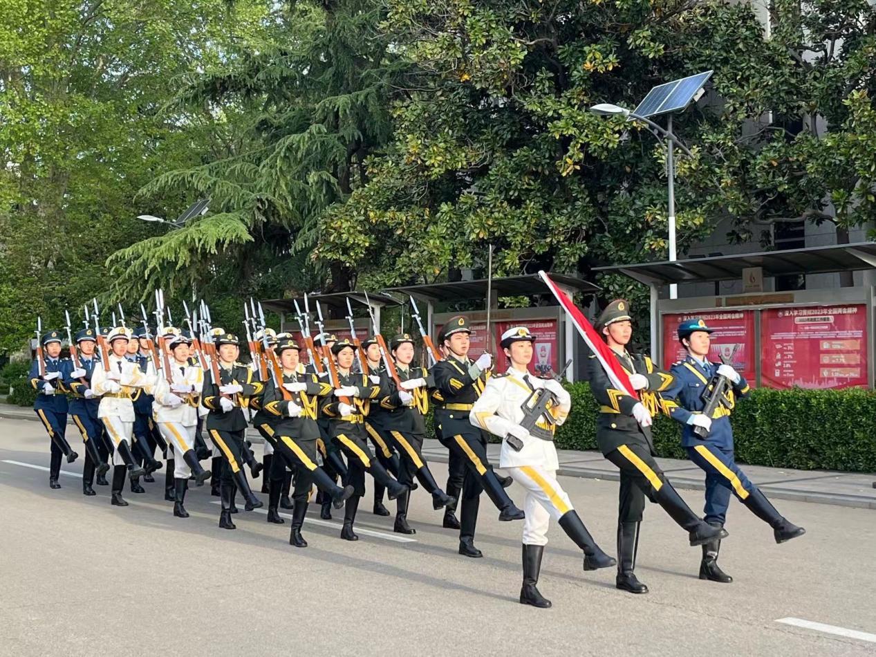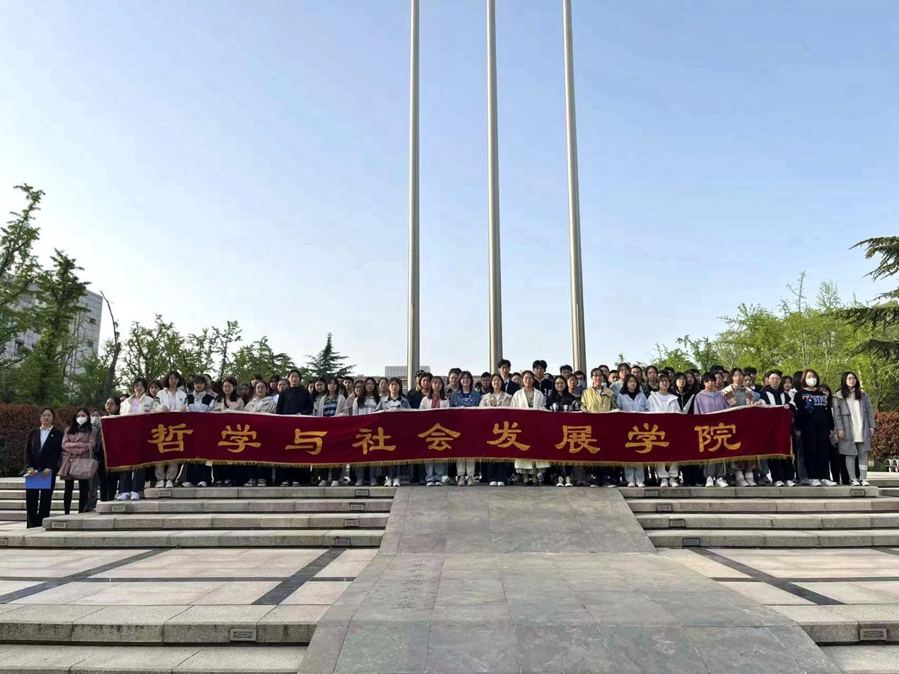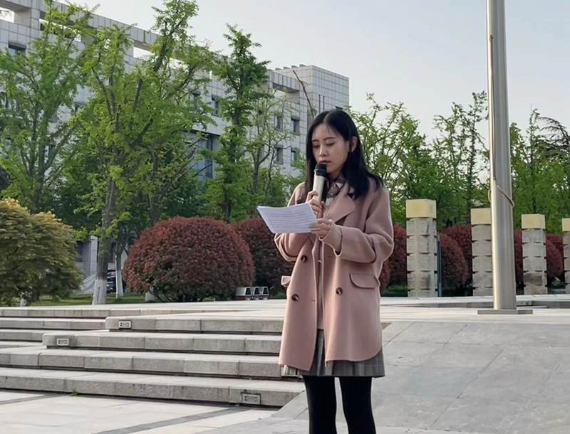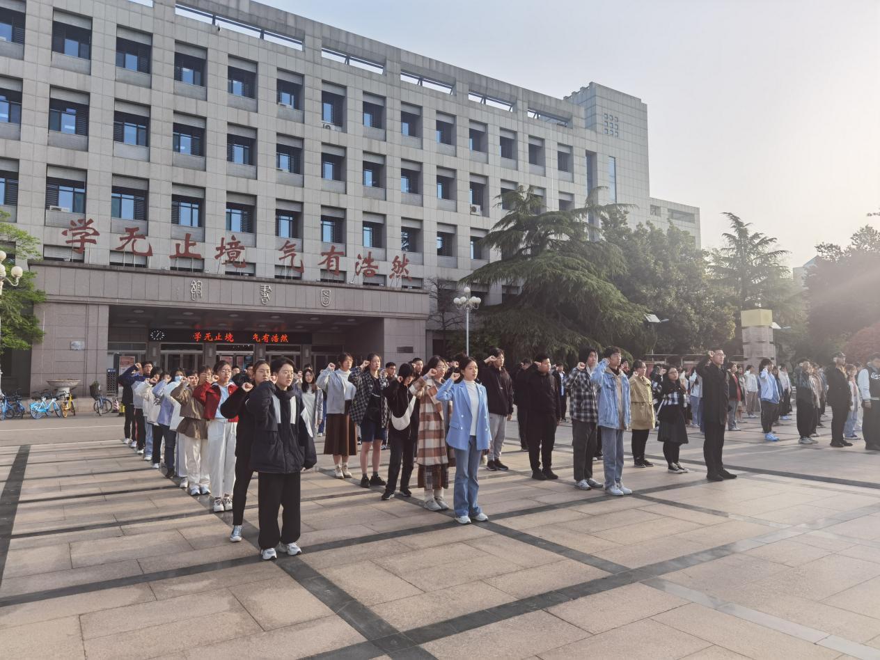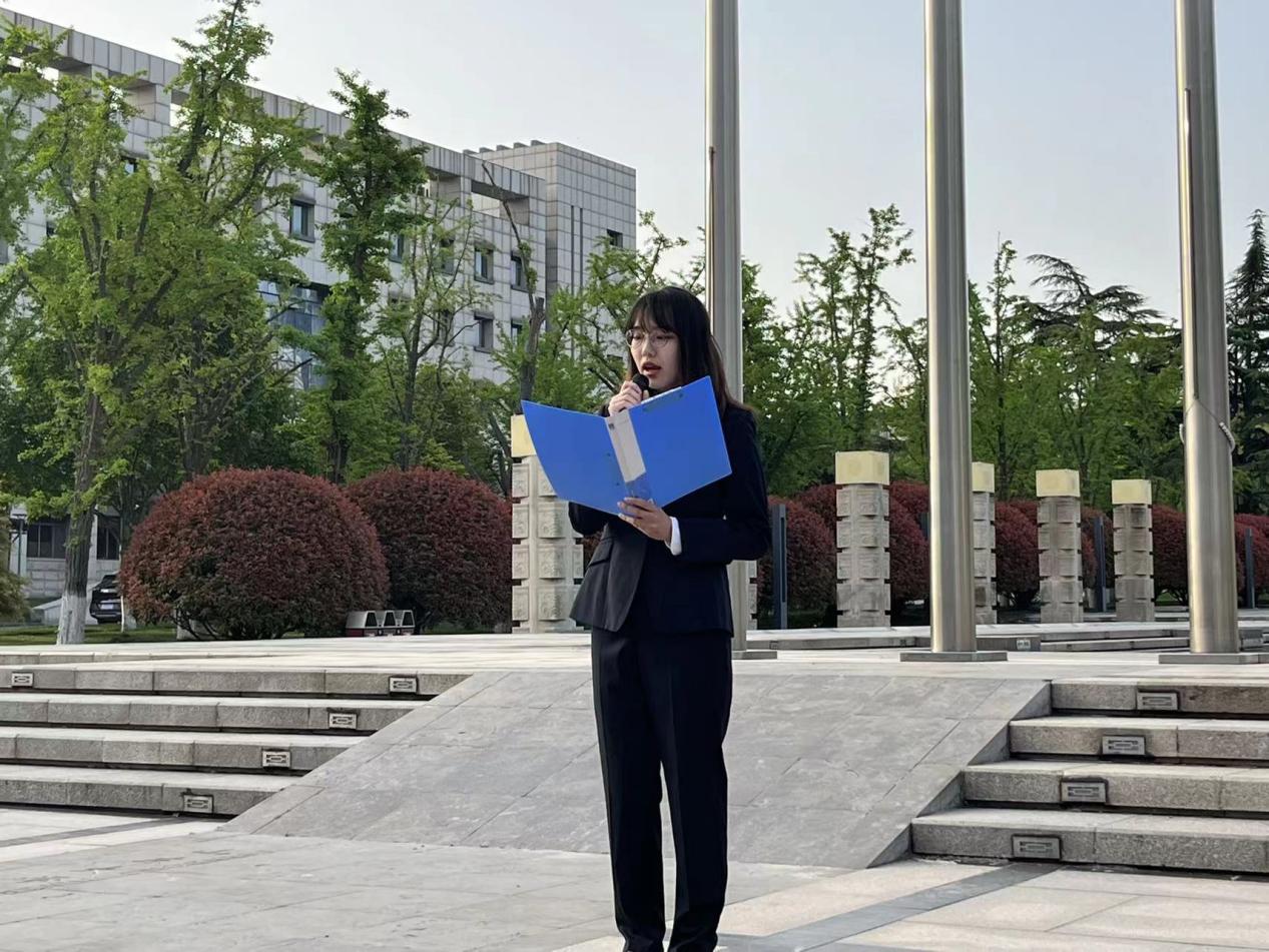 2023年4月10日,山东大学成人在线免费视频于中心校区大成广场举办“喜迎二十大、永远跟党走、奋进新征程”升国旗主题团日活动。哲社学院辅导员封莹、哲社学院2022级全体本科生到场参加,2022级本科生乔梦馨主持活动。