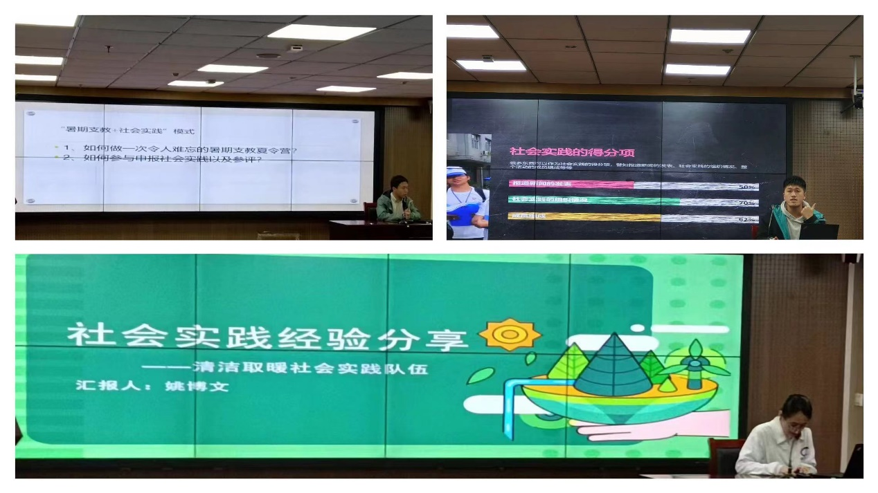 社会实践先进个人2021级本科生佟姜缘就社会实践选题、如何做好社会实践两方面进行详细讲解,着重强调工作留痕的重要性;社会实践先进个人2021级本科生解颖从支教、对接实践场所等方面分享社会实践立项的经验,并结合自身经历鼓励同学们积极主动参加社会实践。社会实践先进个人们的精彩分享激励着同学们在日后社会实践中不断进步,取得优异成绩。